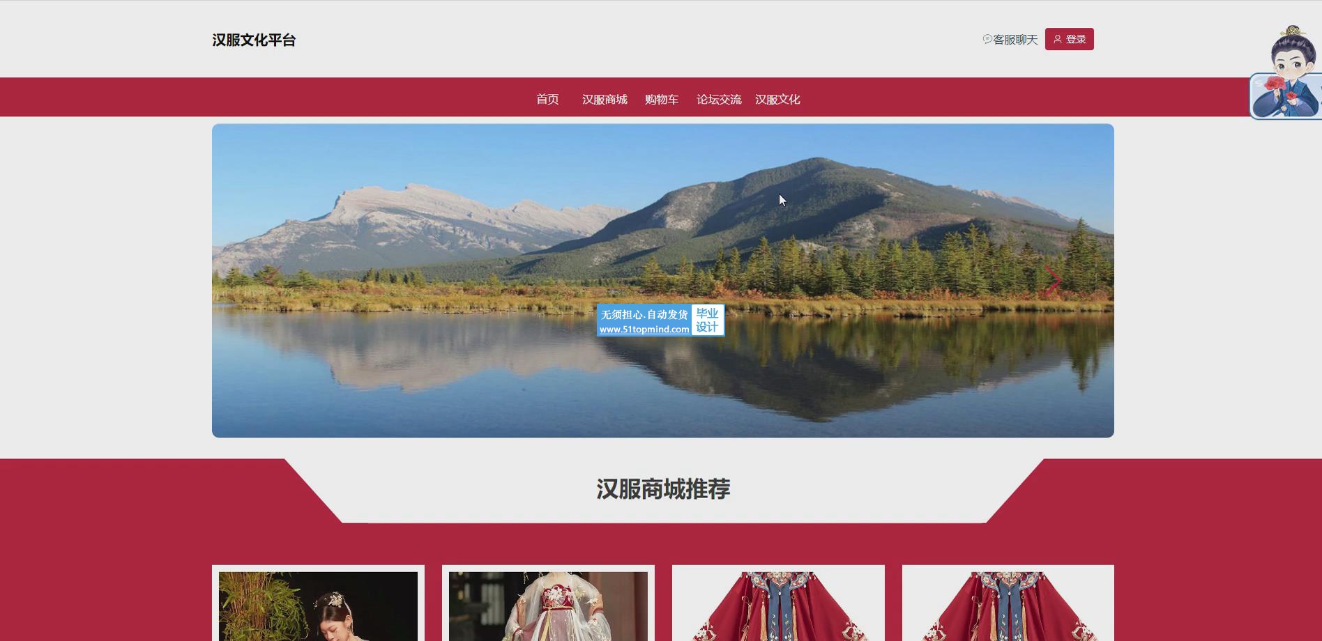 随着电商的发展,市场上各种各样的商品相继出现。大背景以国风文化崛起为背景,汉服文化逐渐受到大众关注,并推动了相关产业的发展。针对当前汉服电商平台文化内容匮乏、用户体验不足等问题,本研究设计并实现了一个集汉服商品展示、文化传播和用户互动于一体的综合性平台。
