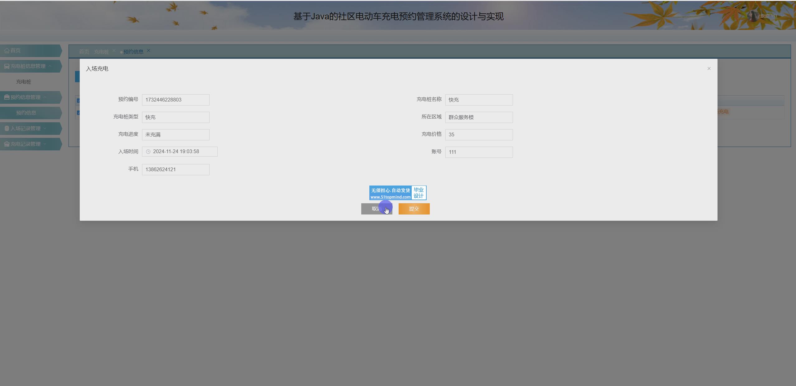 充电桩预约模块