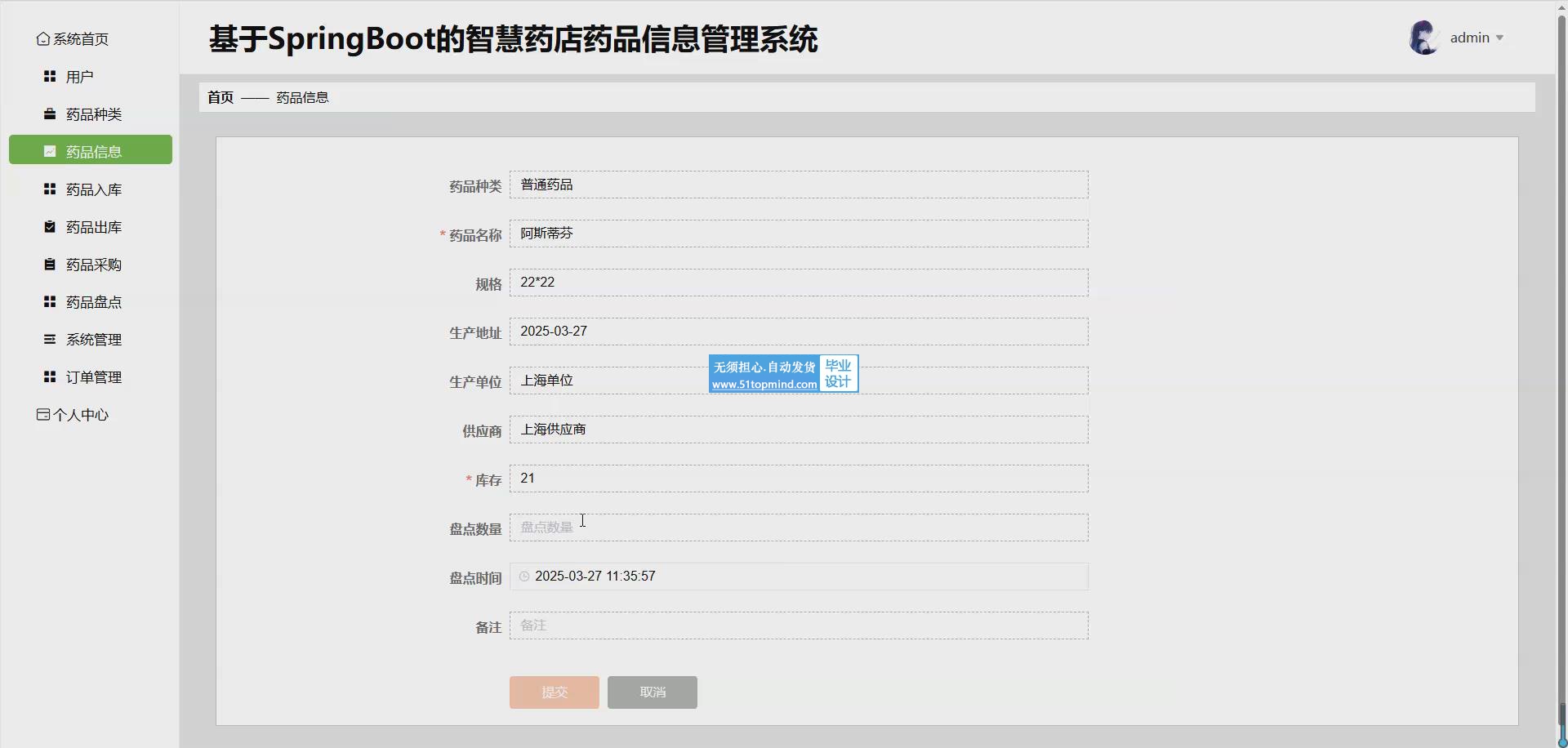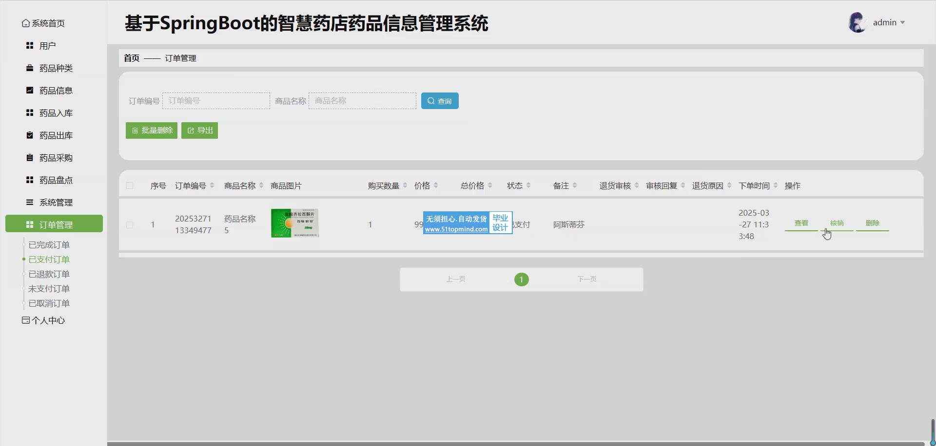 基于Web的智慧药店药品信息管理系统的开发具有重要的现实意义。本系统基于B/S开发模式,采用Vue.js作为前端框架,以实现良好的用户交互体验和动态页面效果;运用Springboot搭建后端服务,提供高效稳定的业务逻辑处理;使用MySQL作为数据库,用于存储和管理系统中的各类数据。系统具备丰富的管理功能,管理员能够对用户信息进行全面管理,包括添加、删除、修改等操作;对药品信息进行详细记录和维护,涵盖药品名称、规格、价格等;实现药品入库、出库、采购、盘点等流程的精细化管理,确保药品库存的准确性和合理性;同时对订单进行有效处理,提高订单处理效率和客户满意度。