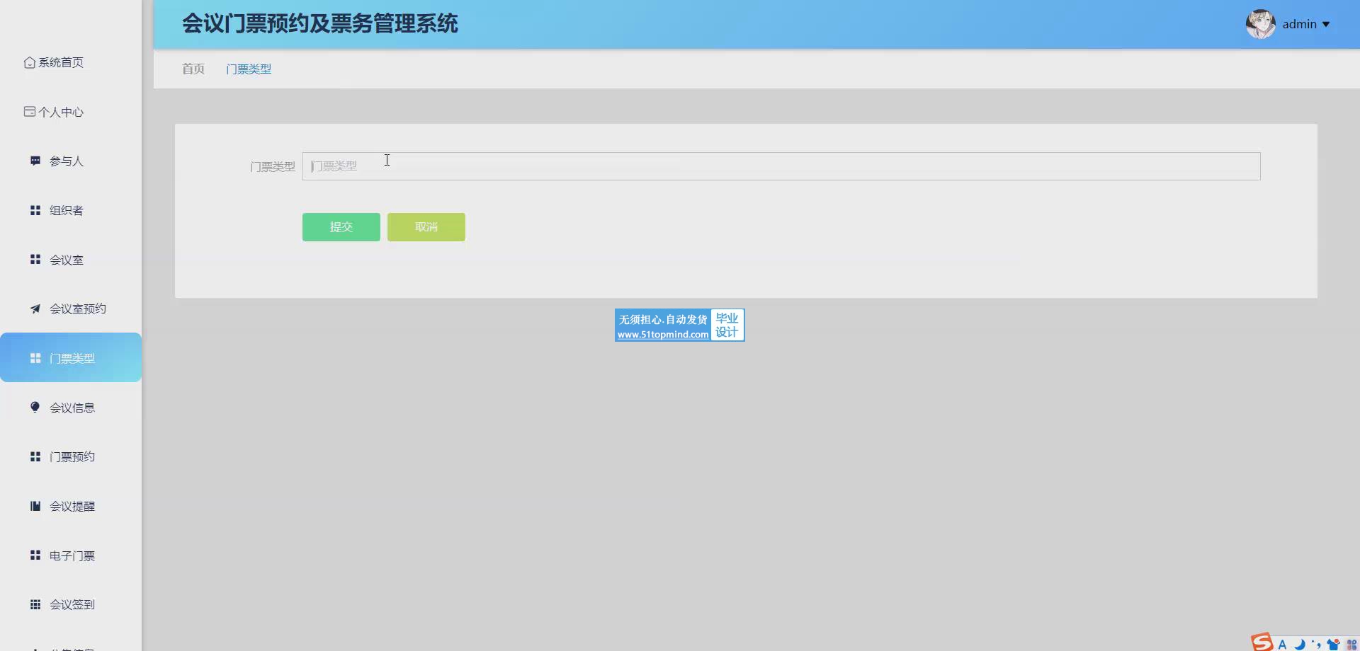 随着会议活动的日益频繁,传统的会议门票预约及票务管理方式已难以满足多样化需求。本文基于 Springboot 框架设计并实现了会议门票预约及票务管理系统,旨在为参与人、组织者提供便捷高效的管理服务。系统涵盖会议室、会议室预约、门票类型、会议信息、门票预约、会议提醒、电子门票、会议签到等核心功能模块。通过对会议室资源的数字化管理,组织者可灵活设置会议室预约规则,合理分配会议场地;针对不同会议类型,系统支持多样化门票类型设定,实现精准售票。参与人能够在线完成会议门票预约,并实时接收会议提醒,凭借电子门票便捷签到。系统采用前后端分离架构,运用 MySQL 数据库存储数据,通过 Spring Security 实现权限控制,保障数据安全与系统稳定。该系统具备良好的兼容性、可扩展性与易用性,有效解决了传统会议管理流程繁琐、效率低下等问题,对提升会议管理水平与参会体验具有重要意义。