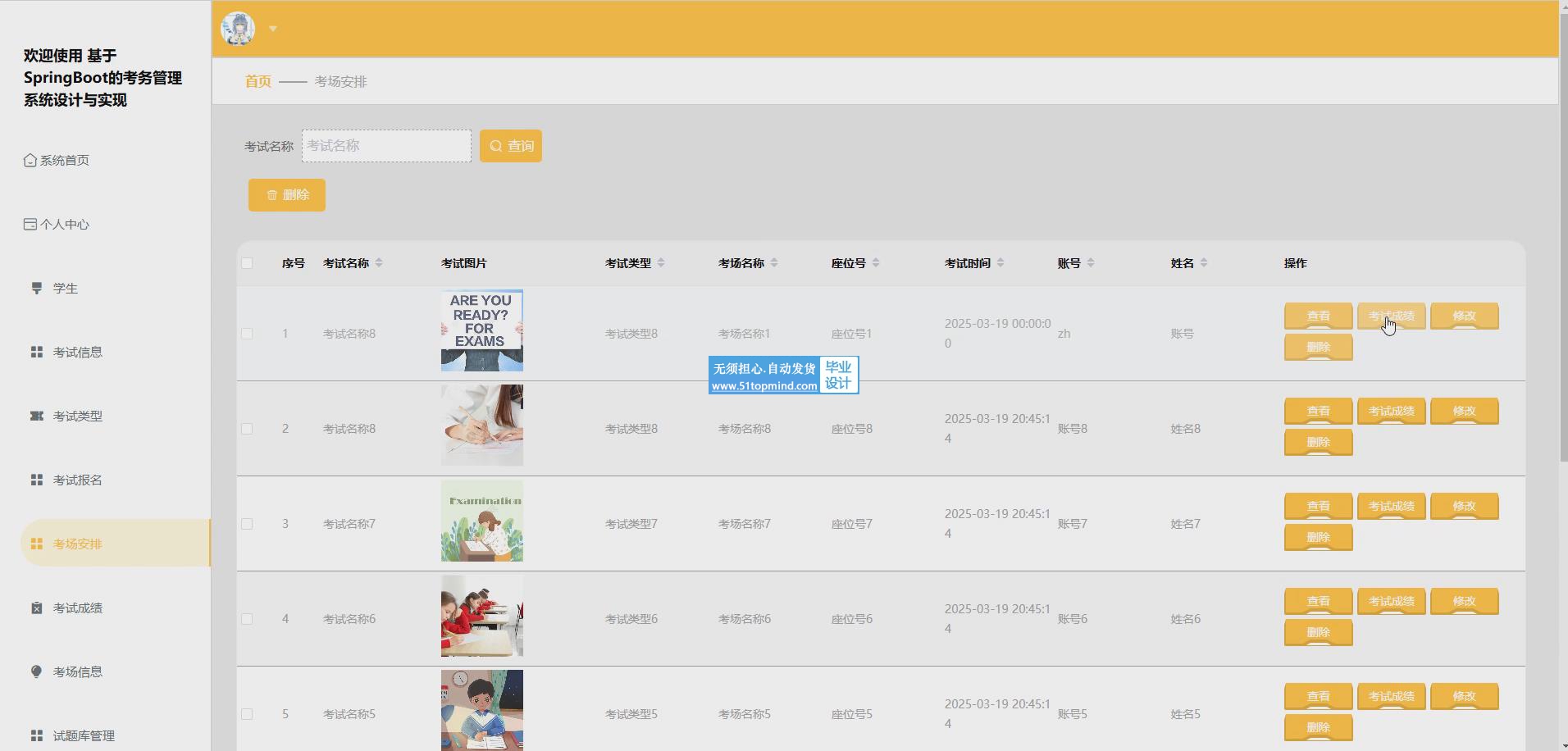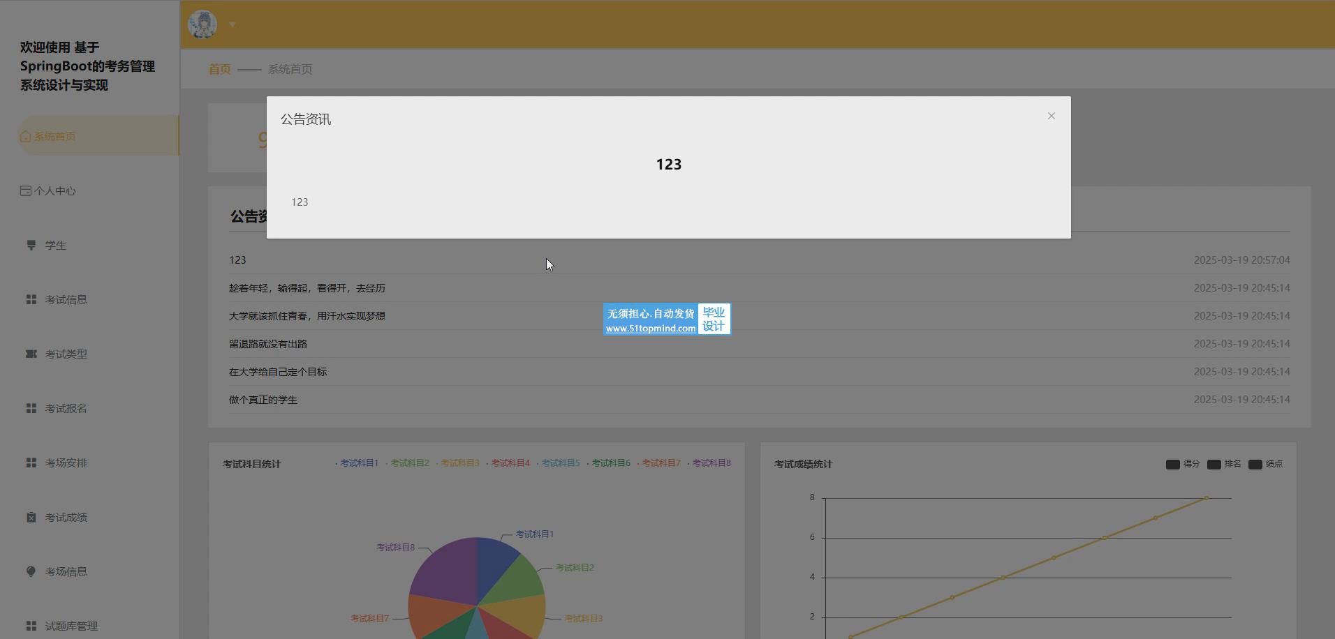 关键词: 考务管理系统;Java语言;SpringBoot框架;MySql数据库