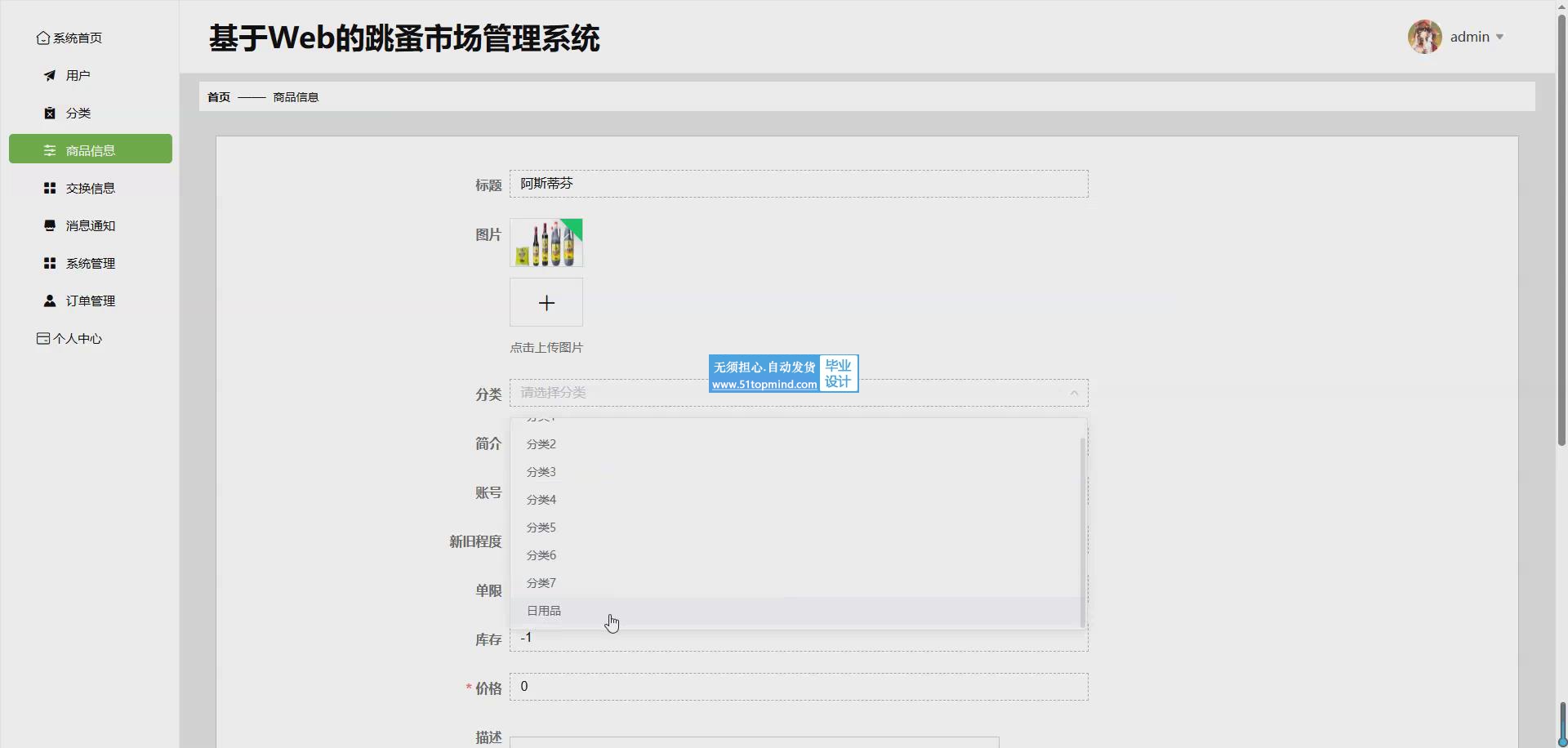 (2)促进管理员与用户间的信息互通:通过系统的功能,管理员可以发布商品信息、修改和查询商品信息,让用户第一时间了解到商品的信息及动态。
