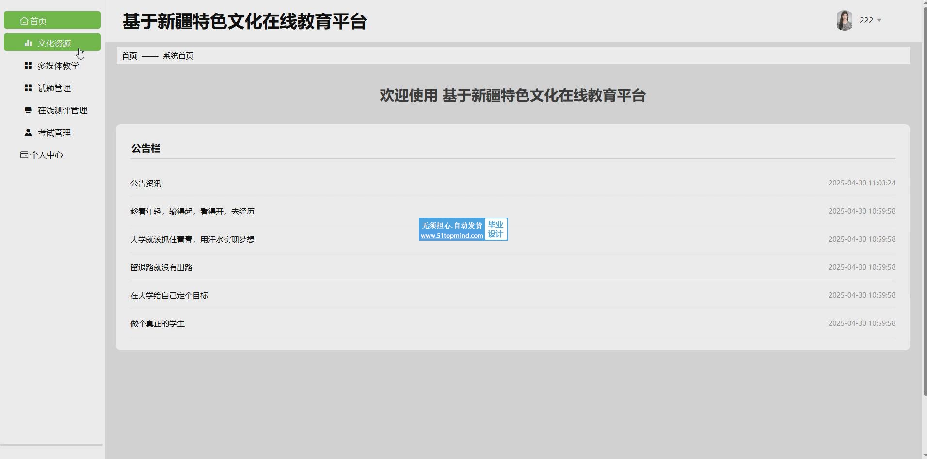 关键词:新疆特色文化在线教育平台;java语言;mysql数据库;