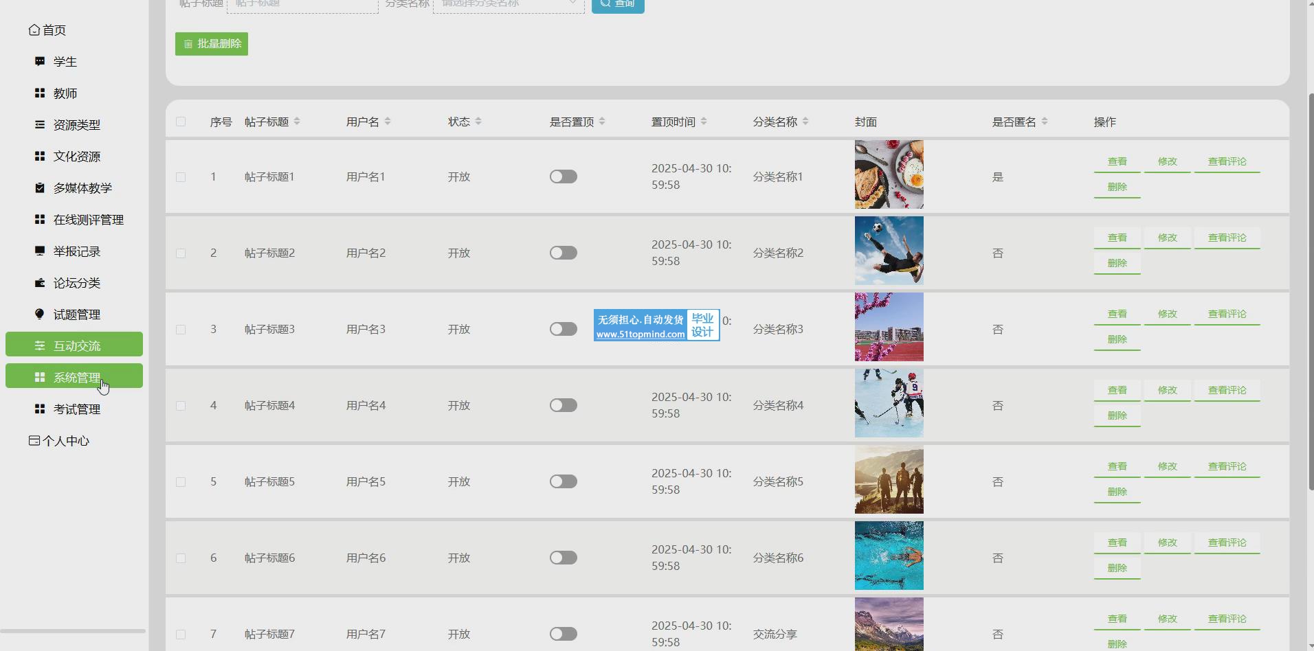 该系统由三大主体构成:管理员、学生及教师,他们各自扮演着不同的角色并拥有相应的权限。管理员作为系统的核心管理者,通过预设的多样化功能,能够全面掌控系统运作。他们利用专门的后台管理接口,对系统内的各类信息进行高效管理,确保系统的稳定运行。学生与教师则依据其特定权限,享受系统提供的不同功能服务。这种权限分级设计,不仅提升了系统的安全性和可控性,还使得各主体能够各司其职,共同促进系统的顺畅运作。该系统通过精细的权限划分,实现了对不同角色的有效管理和功能分配[9]。