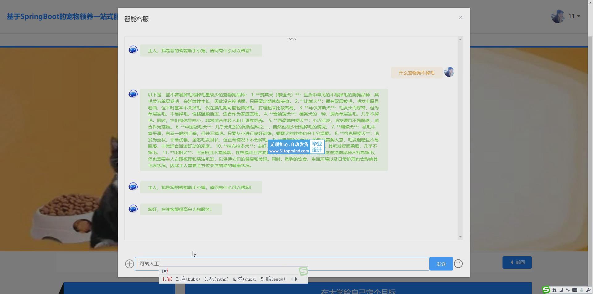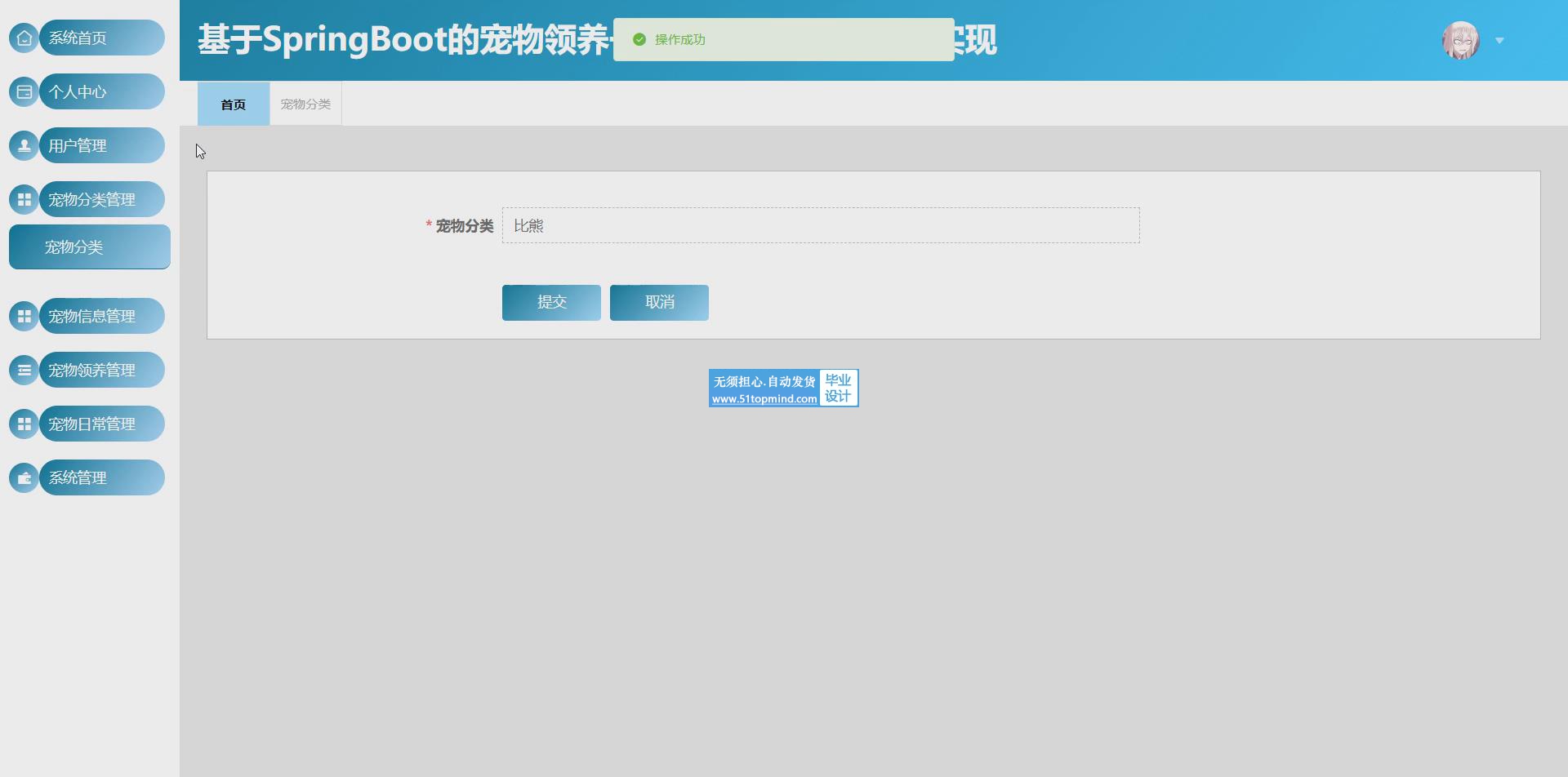 系统涵盖了宠物分类管理、宠物信息管理、宠物领养管理以及宠物日常管理四大核心功能模块。宠物分类管理模块实现了对宠物品种的细致划分,便于用户快速查找心仪的宠物类型;宠物信息管理模块则负责全面记录宠物的健康状况、疫苗接种情况、性格特点等关键信息,确保领养过程的透明度和安全性;宠物领养管理模块通过标准化的领养流程,提高了领养效率和成功率;宠物日常管理模块则提供了宠物日常护理、健康监测等实用功能,帮助领养者更好地照顾宠物。