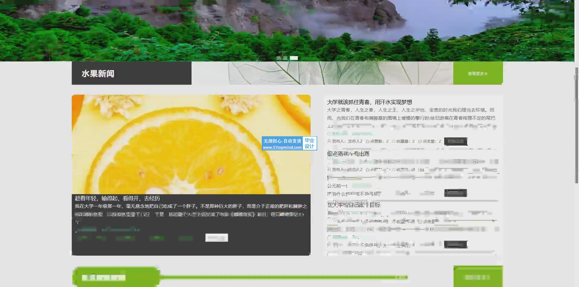 水果新闻管理:管理员可以上传各类与水果相关的内容,吸引用户购买水果或者在用户浏览商品疲惫的时候查看新闻进行放松。