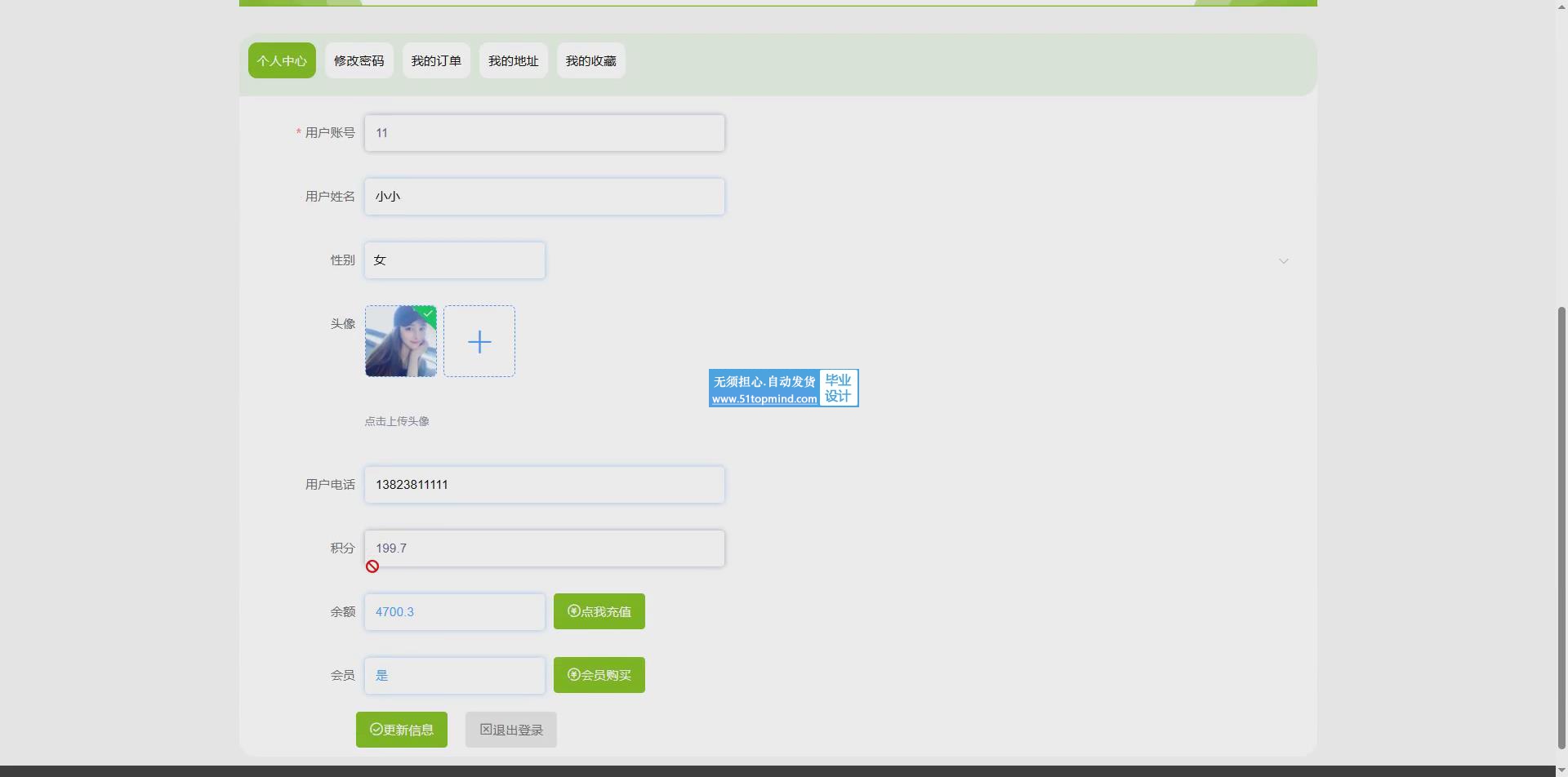 管理员功能:管理员拥有更高的权限可对自己信息或者用户信息进行查看与修改,上传水果信息,查看用户购物方面信息管理,会员方面信息管理等。