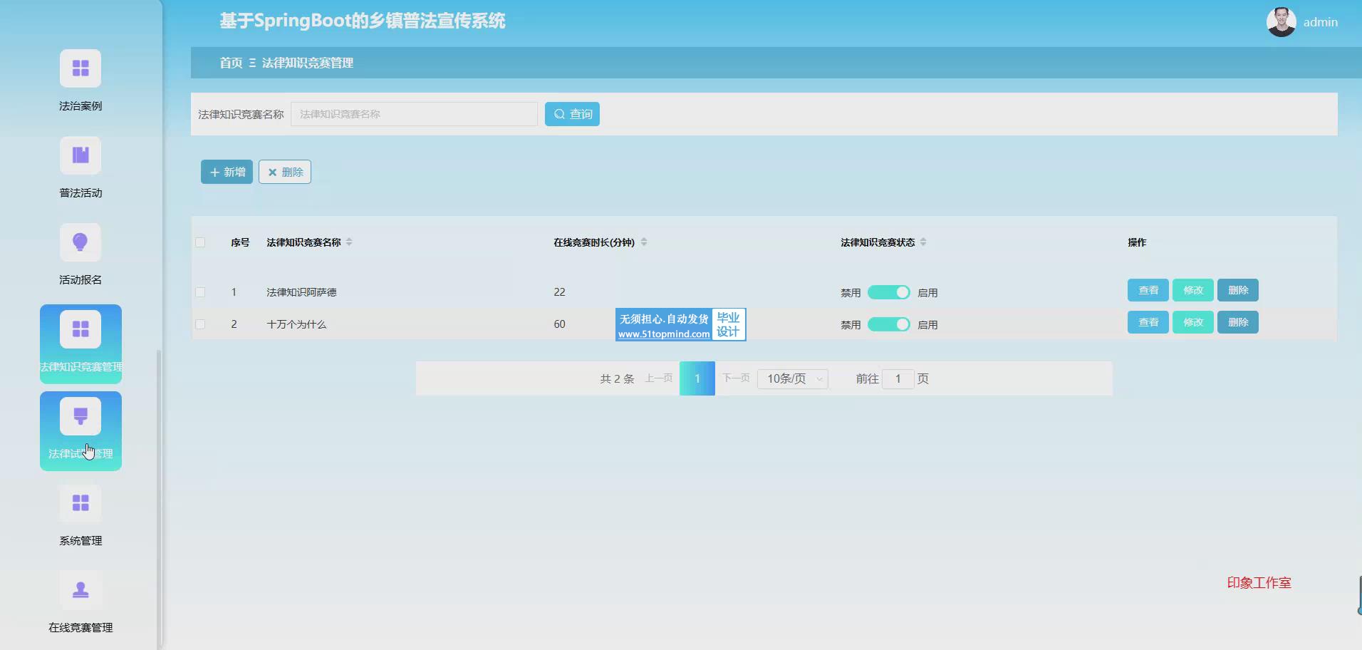 系统管理员功能:创建并管理法律试题,组成知识竞赛试卷。