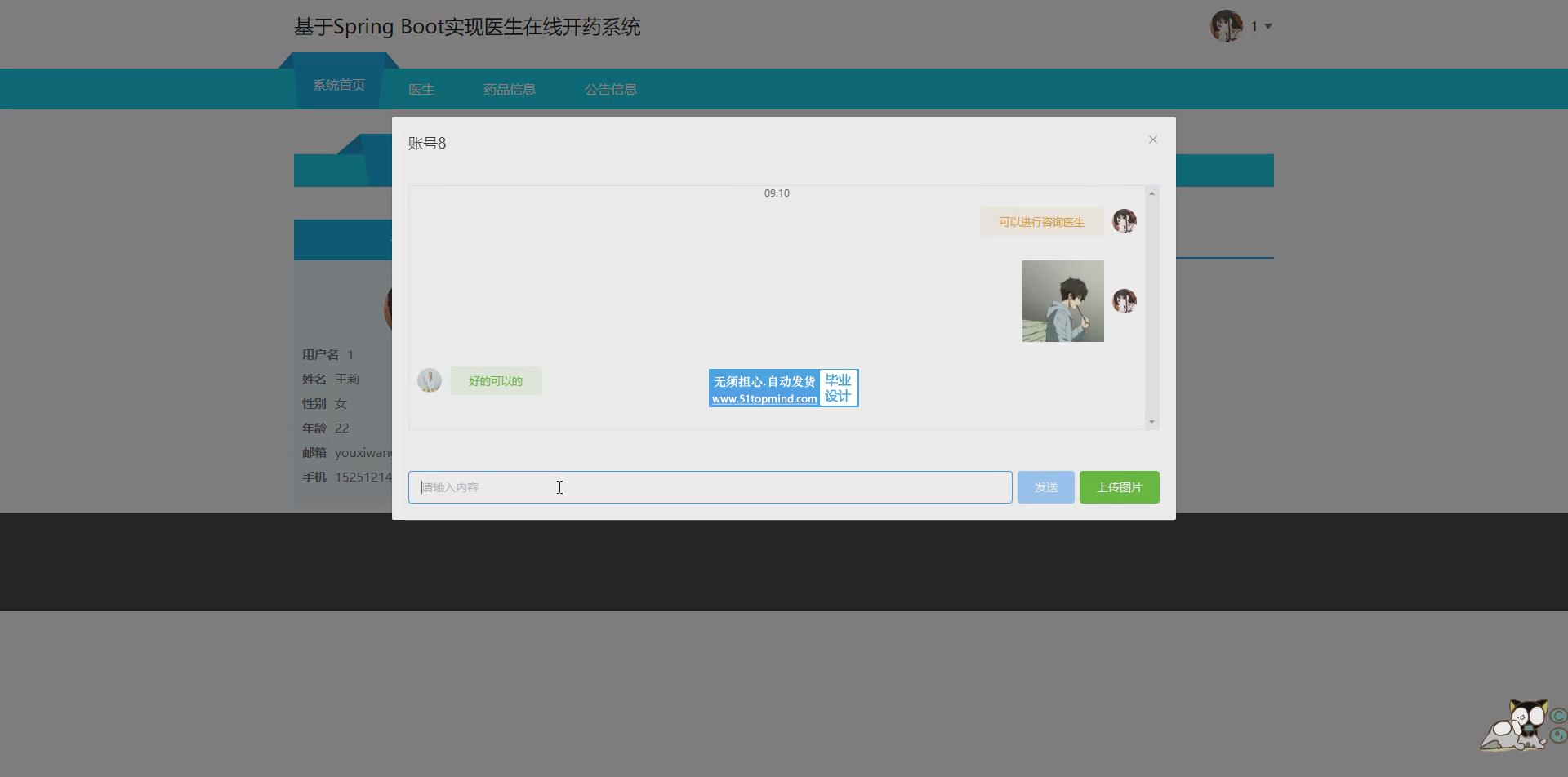 该模块提供即时消息功能,支持文本和图像等多种消息类型,方便患者就其病情、药物问题等咨询医生。医生可以在私人聊天模块中查看患者的历史消息,以了解他们病情的变化和药物反馈。