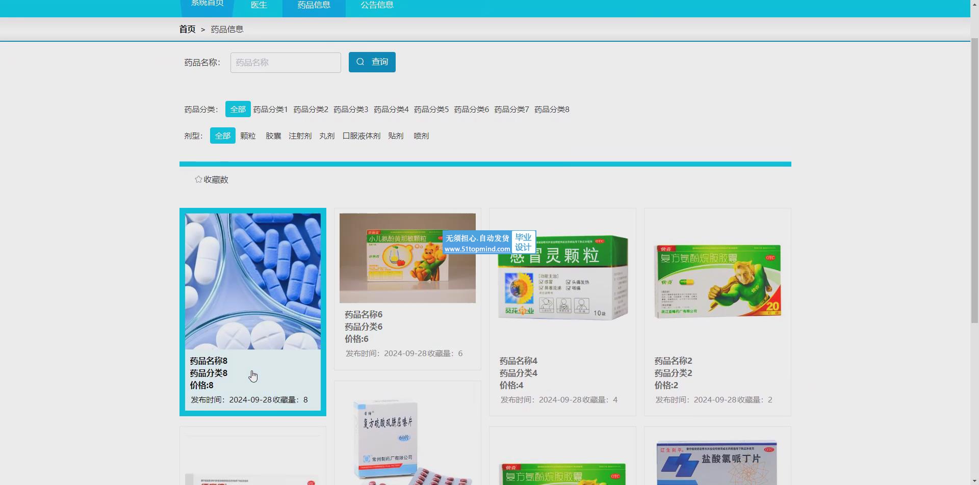 本模块集成了药品检索与处方开具两大核心功能。在药品检索功能方面,医生能够通过输入药品名称、关键词或挑选药品类别进行快速定位,系统提供模糊匹配与精确匹配查询方式,以便医生迅速锁定目标药品。至于处方开具功能,医生可依据患者的诊断结果及用药需求,挑选适当的药品,并设定用药剂量与频率,进而生成电子处方。