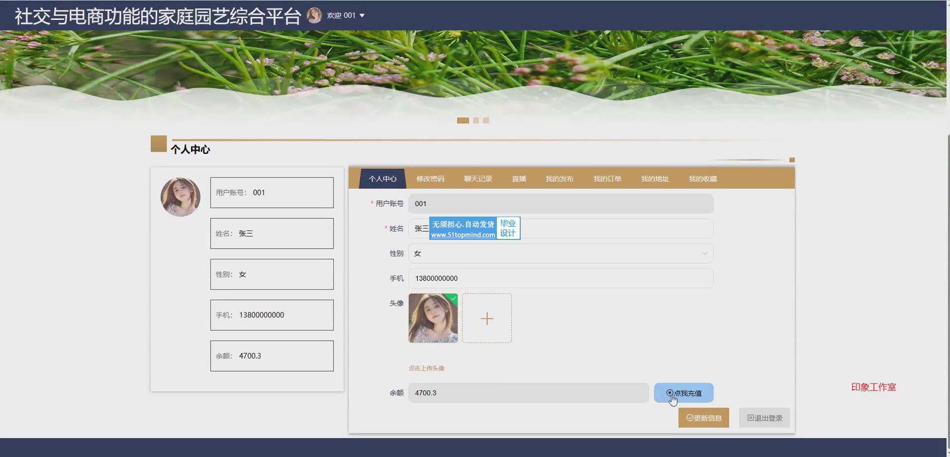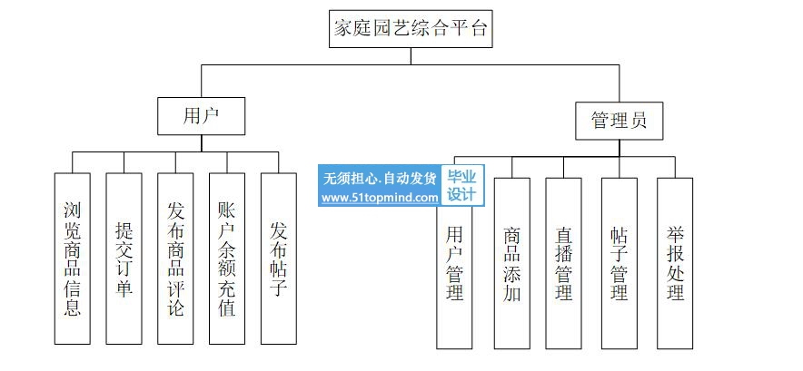 本系统提供家庭园艺领域的社交与电商综合服务。用户可浏览商品信息,查看商品详情与用户评价,提交订单并完成支付。用户发布商品评论,分享使用体验,充值账户余额用于平台内消费。用户发布帖子,分享园艺经验或提出问题,参与社区互动。管理员管理用户信息,审核用户注册与权限分配,添加商品信息并维护库存。管理员管理直播内容,审核直播申请与监控直播过程,审核帖子内容并处理违规信息。管理员处理用户举报,维护平台秩序。系统通过数据分析实现个性化推荐,优化用户体验,构建交易与社交融合的家庭园艺生态体系。