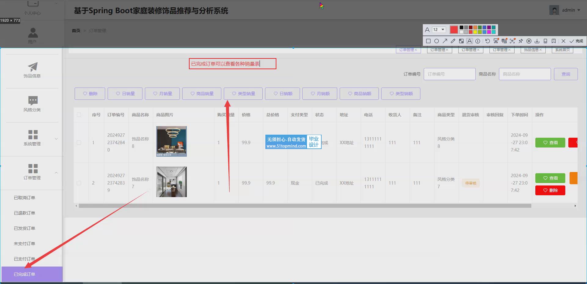 本文通过深入研究B/S结构的家庭装修饰品推荐与分析系统的总体设计和具体实现流程,从市场分类、UI设计到具体实现过程均遵循了网络设计的基本思路和数据库的设计方式。前后端的设计和开发技术采用了IDEA开发工具,并使用了MySQL管理数据库系统,同时使用了Java编程语言进行技术开发。本文详尽阐述了对家庭装修饰品推荐与分析系统的系统分析、设计与开发技术全过程,并剖析和实现了家庭装修饰品推荐与分析系统的基本功能。系统前台包含用户模块、展示模块、购买模块,后台应该包含用户管理、饰品管理、订单管理、评论管理等模块。系统架构清晰、界面美观友好、人机交互友好,使用户体验良好,数据存储可靠安全。