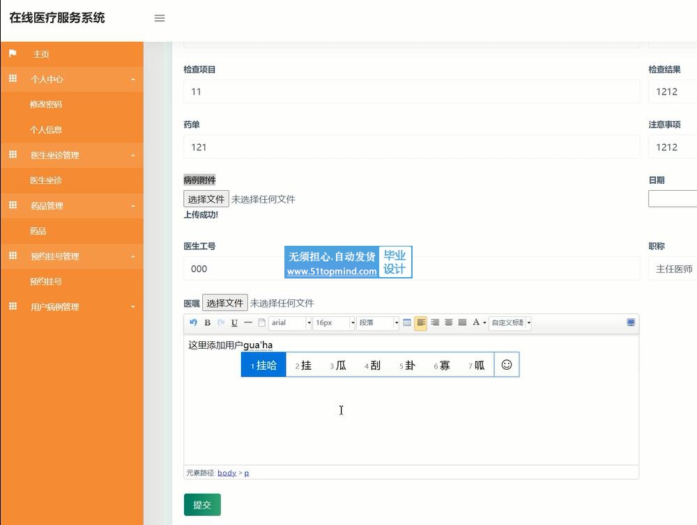 随着经济的迅速发展,人们对生活水平和身体健康的要求越来越高,但同时也面临着优质医疗资源紧缺,看病难,看病贵,医患关系危机等各种各样的问题。近些年,越来越多传统行业的服务被迁移到互联网上来。如何使用互联网技术解决当前医疗系统中存在的问题,提高效率,成为研究热点。针对这种现状,本文设计并且实现了一个在线医疗服务系统。在线医疗服务系统为患者提供了内容丰富、信息准确、便捷高效、体贴主动的互联网医疗服务新体验,提高了患者的满意度,同时提升了医院服务和管理的水平。