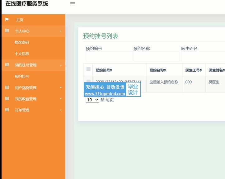 在线医疗服务系统是在MySQL中建立数据表保存信息,运用SSM框架和Java语言编写。并按照软件设计开发流程进行设计实现。系统具备友好性且功能完善。管理员管理医生,药品,预约挂号,购买订单以及用户病例等信息。医生管理坐诊信息,审核预约挂号,管理用户病例。用户查看医生坐诊,对医生预约挂号,在线购买药品。