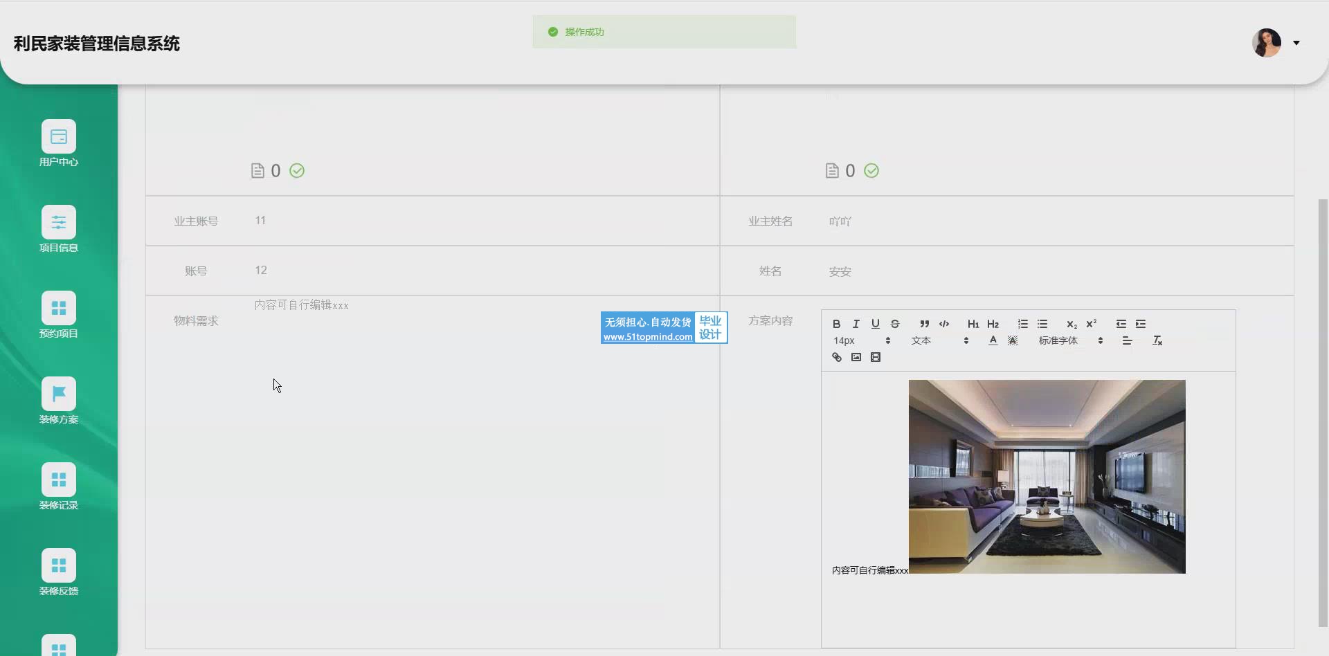 项目管理:系统应提供对家装项目的全面管理功能,包括项目立项、进度安排、施工记录、预算管理、资源调配等。用户可以实时查看项目进展,更新施工状态,协同解决问题。