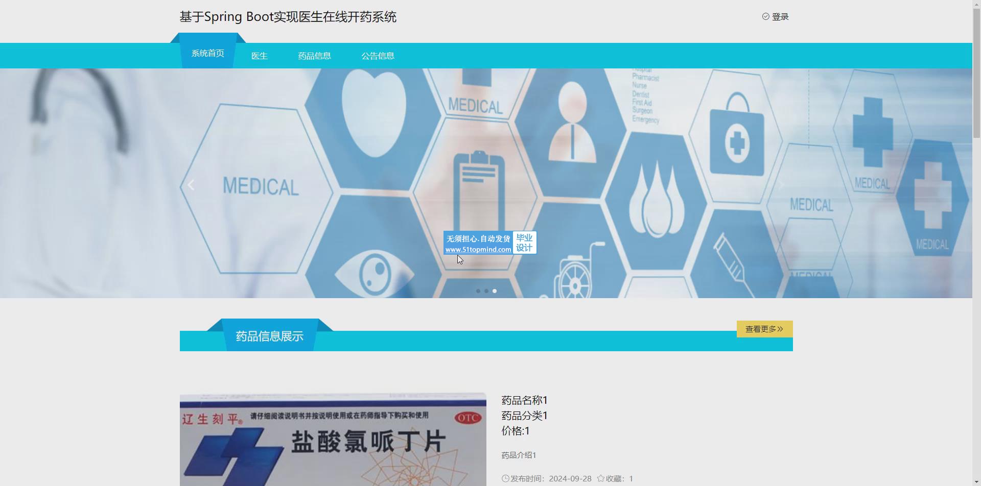 关键词:医生在线开药;Spring Boot技术;Vue.js框架;MySQL数据库