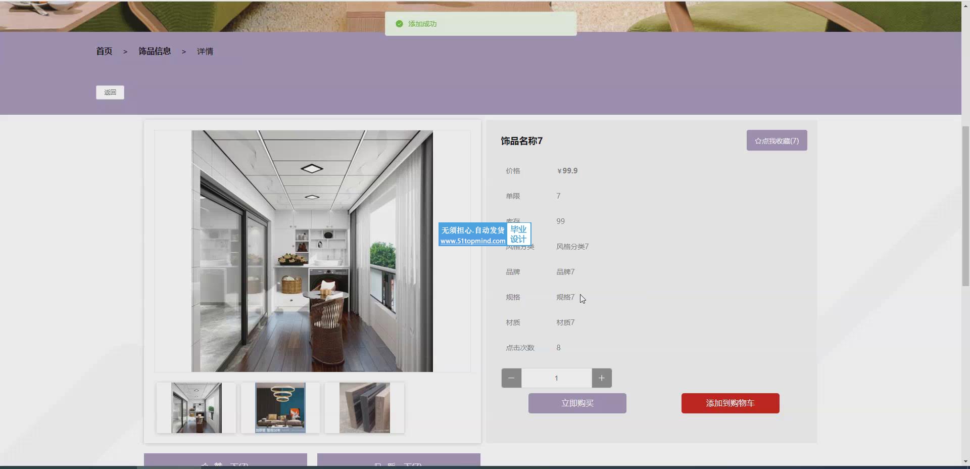 购物车:展示用户已加入的饰品,包括名称、价格、数量等。允许用户修改饰品的数量、删除饰品或进行结算,显示购物车的总金额。
