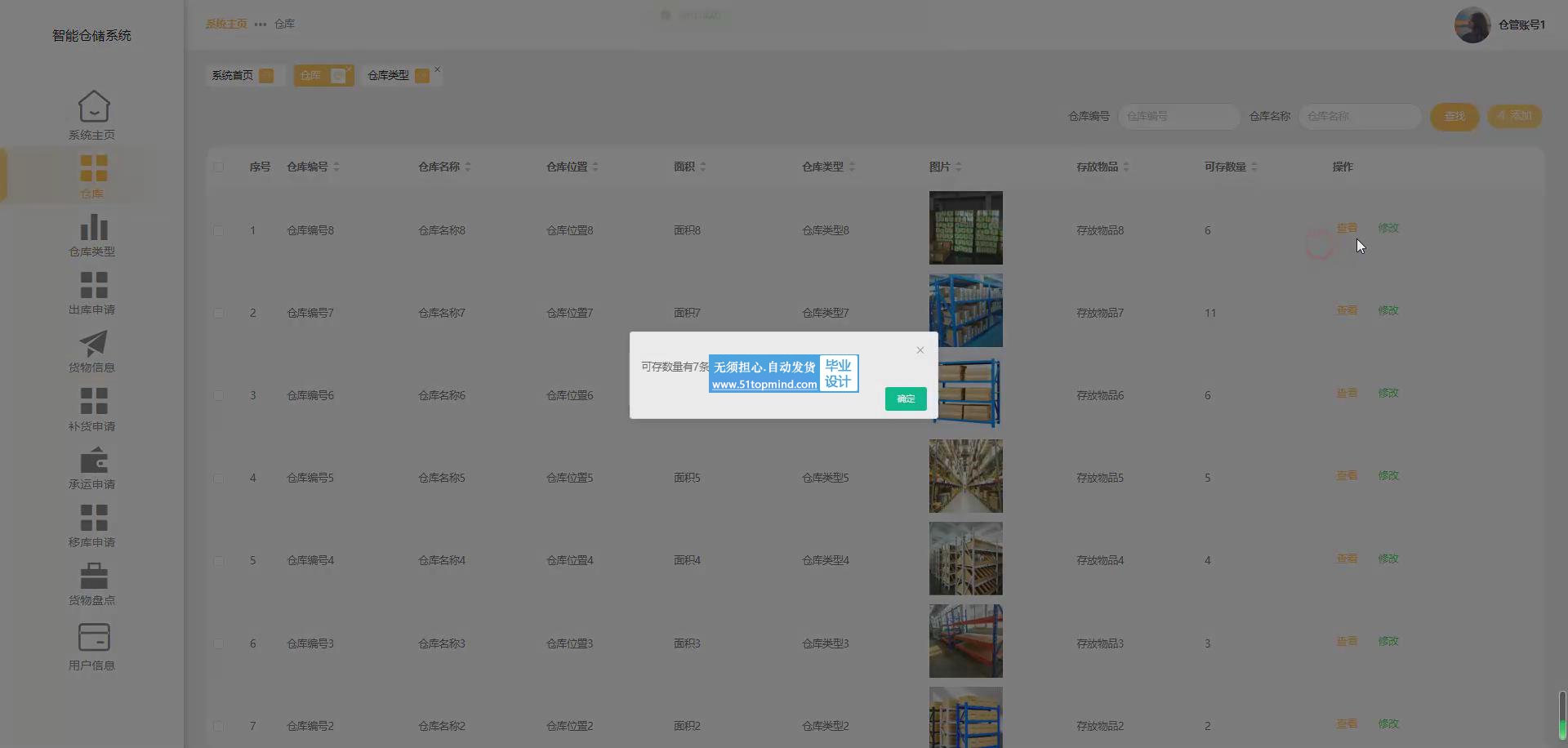 (2)仓库管理:对不同的仓库信息执行修改和删除,也能够添加新仓库