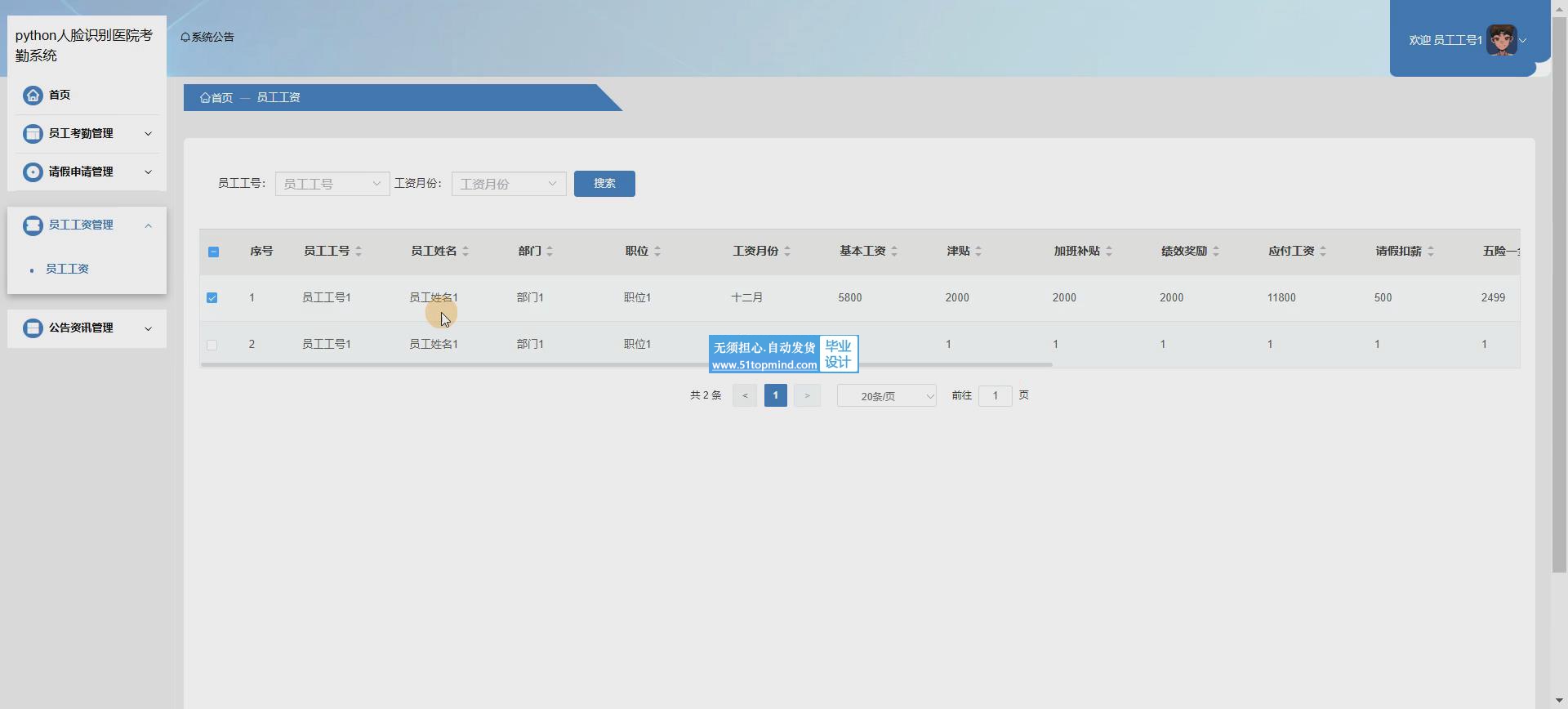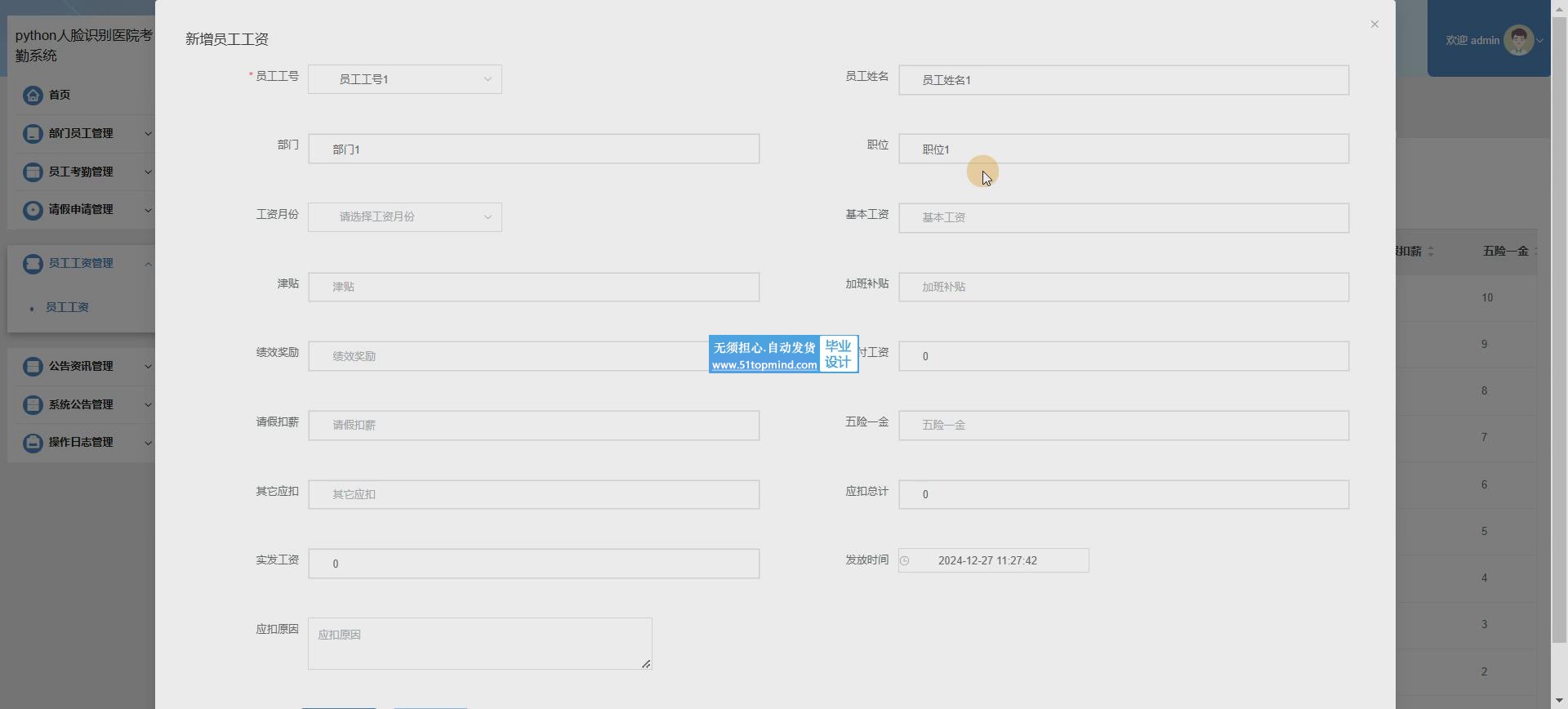 员工利用此模块提交休假申请,选择休假种类,时间,系统人脸识别验证员工身份,处理请假请求,管理员审核批准,拒绝申请。