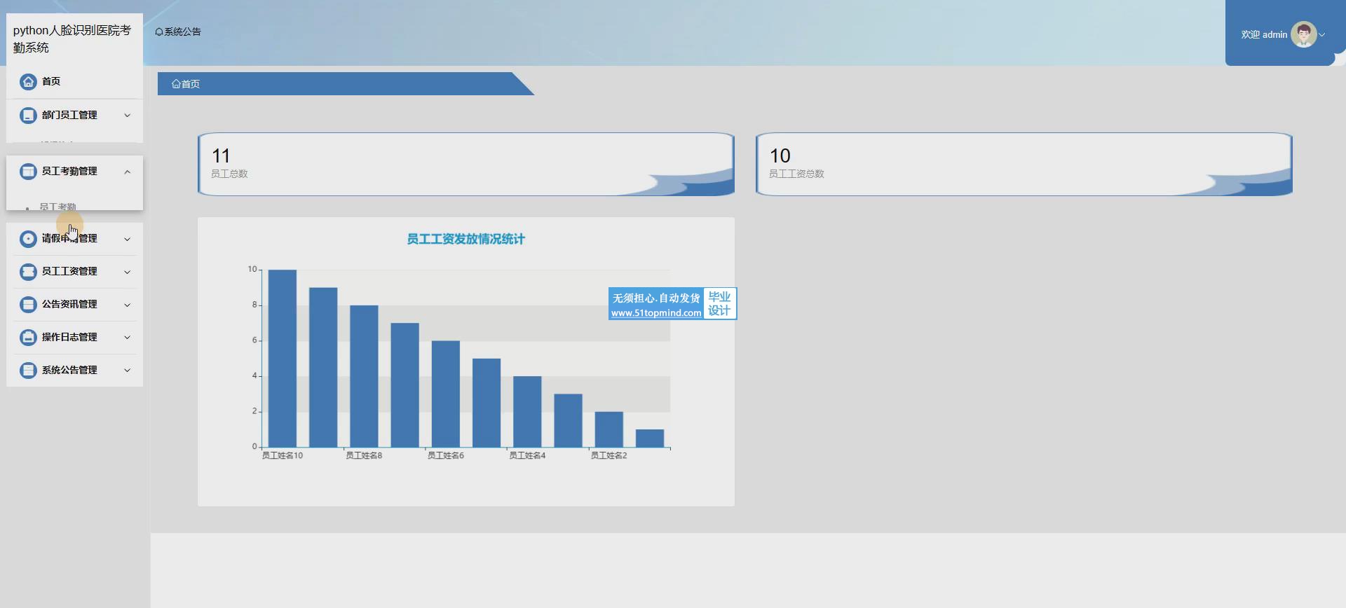 员工通过人脸识别进行上班考勤,系统自动记录考勤时间并存储在数据库中。该模块能够迅速准确地完成上班签到操作。