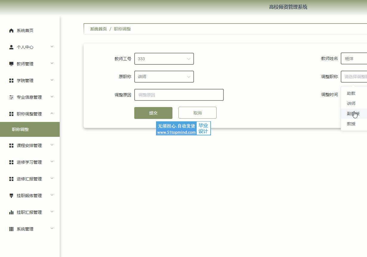 关键词:高校师资管理系统;