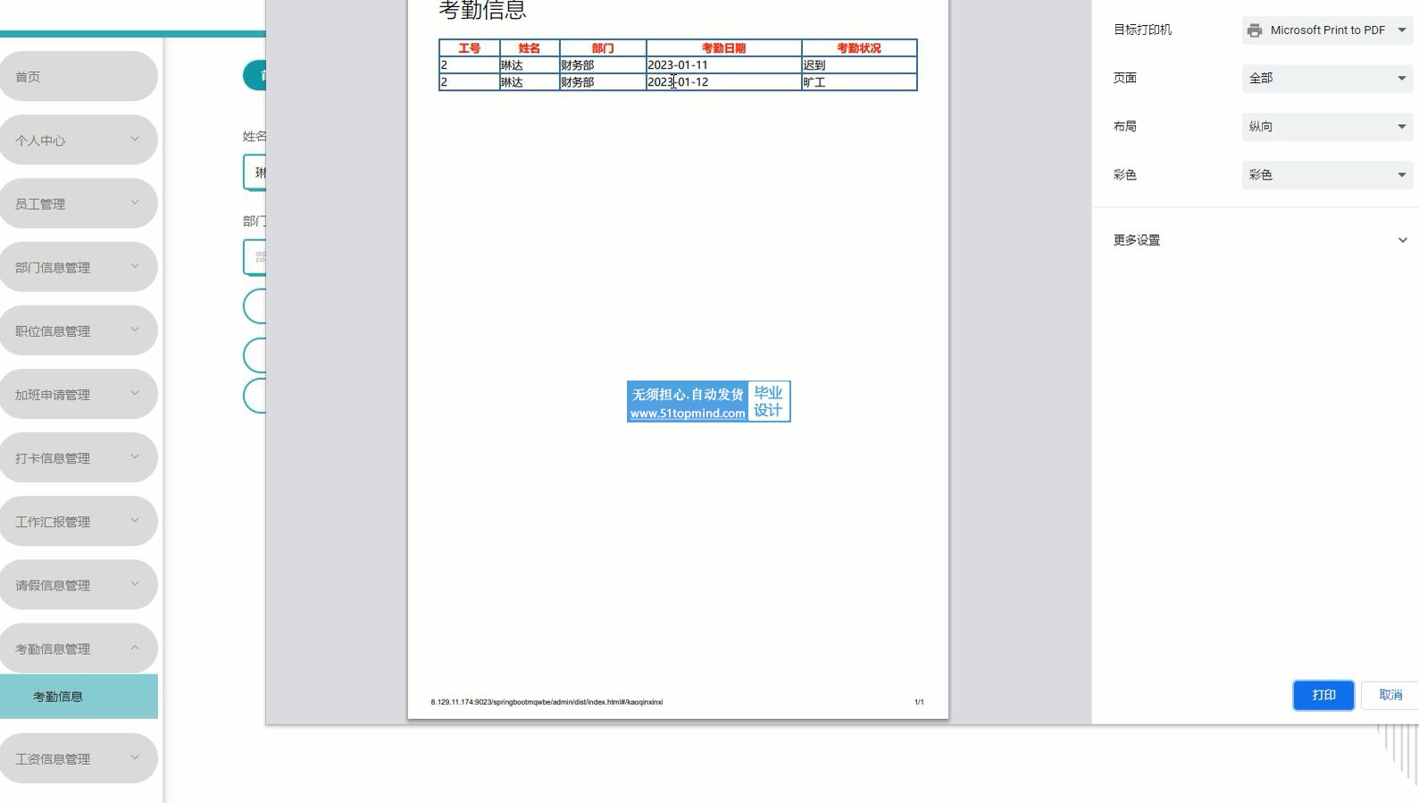 (1) 员工在系统可以查看加班申请、打卡信息、工作汇报、请假信息,同时也能更新个人信息及密码[6]。
