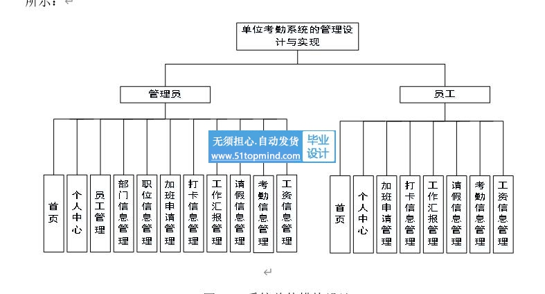 单位考勤系统的管理设计与实现综合网络空间开发设计要求。目的是将单位考勤系统的管理通过网络平台将传统管理方式转换为在网上操作,方便快捷、安全性高、交易规范做了保障,目标明确。单位考勤系统的管理设计与实现可以将功能划分为员工和管理员功能[10]。