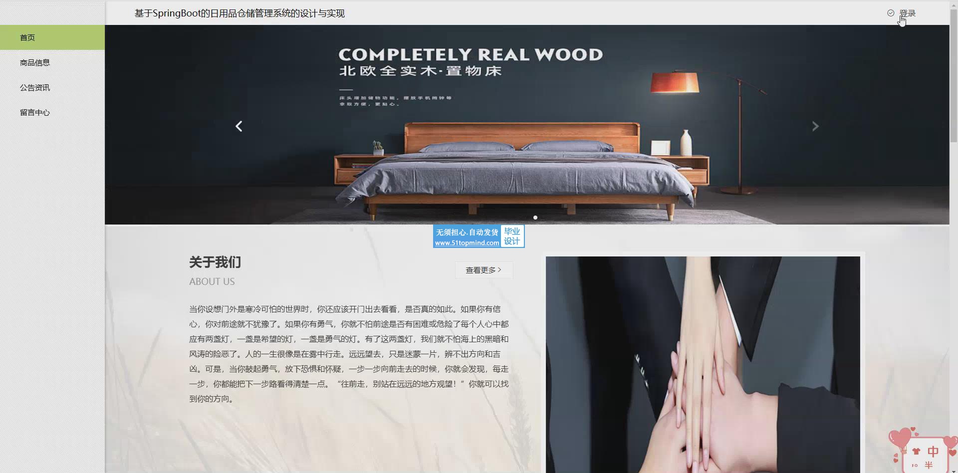 关键词:日用品仓储管理系统;SpringBoot框架;Java语言