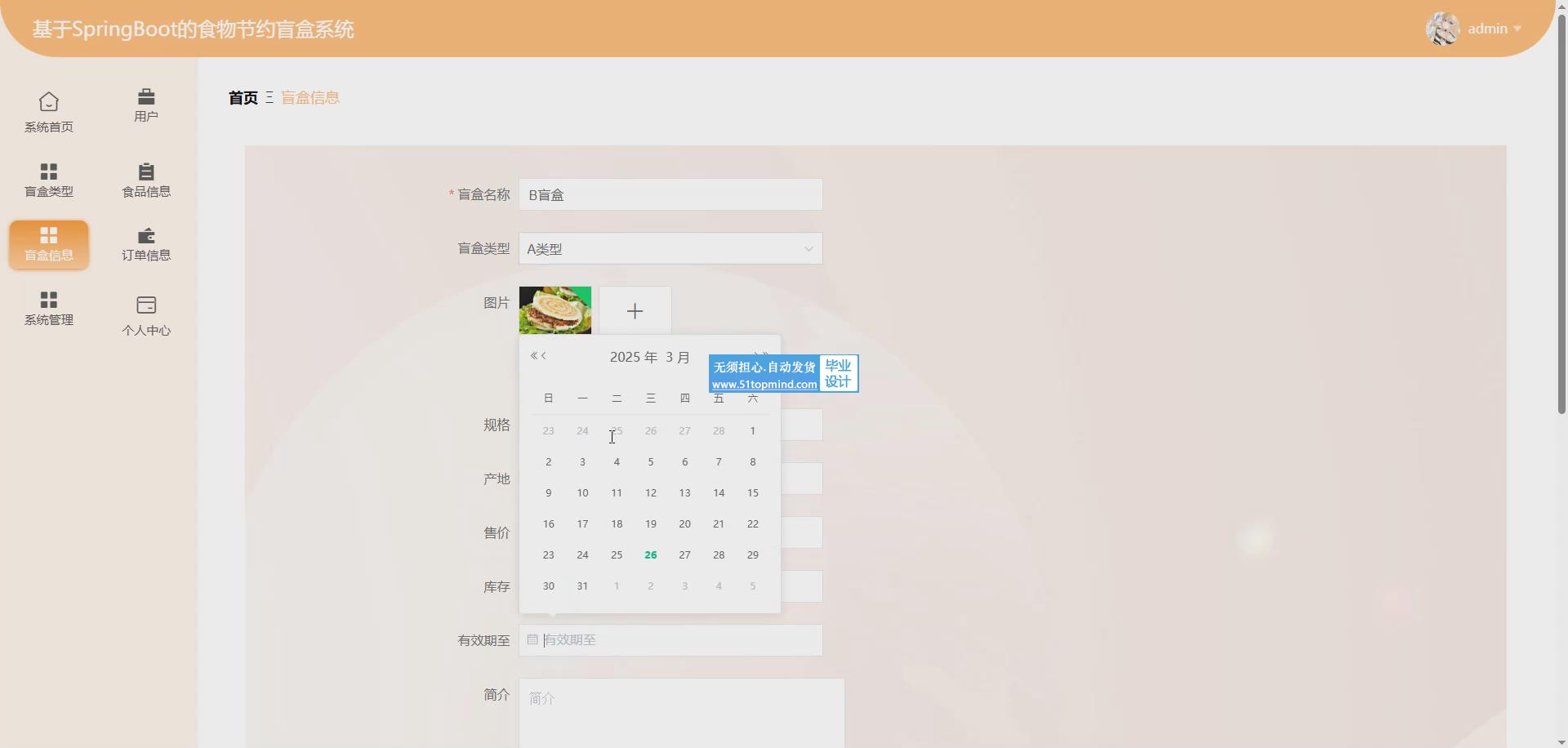 关键词:食物节约盲盒系统;Spring Boot框架;MySQL数据库