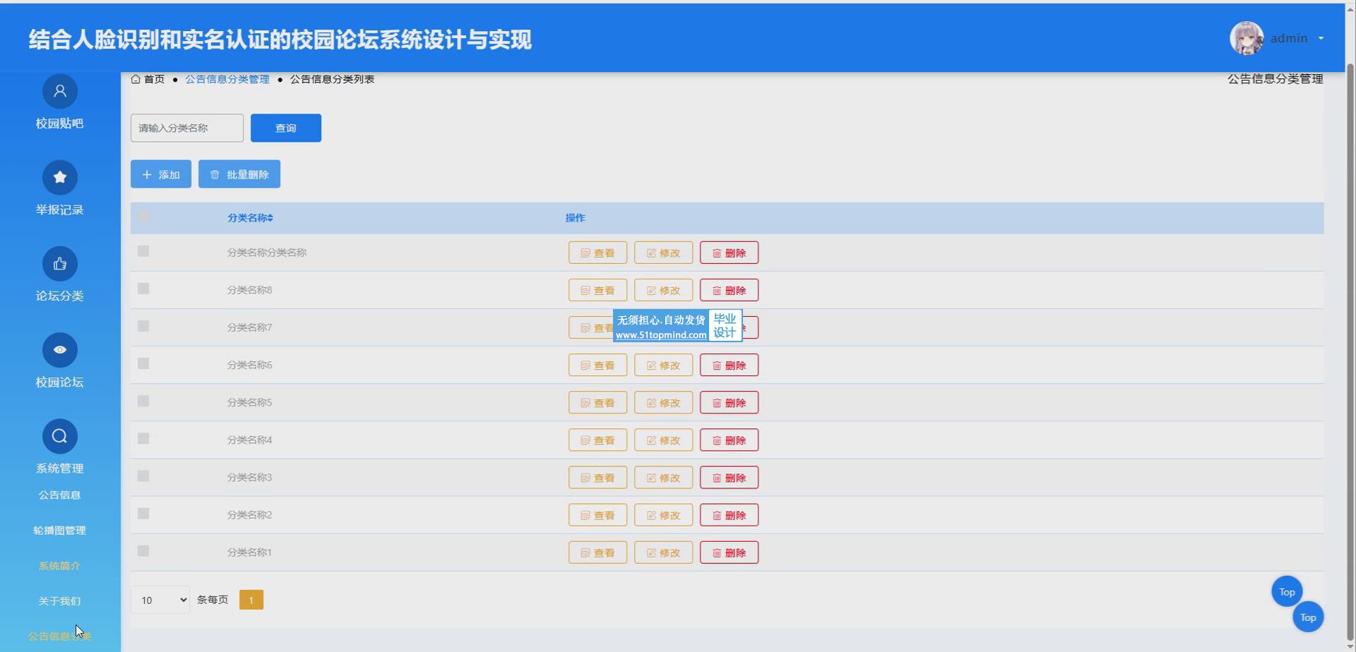 就解决这些问题而言,本研究精心设计且切实实现了一个校园论坛系统,此系统将人脸识别与实名认证予以结合。该系统以 Java Springboot 框架作为核心之所在,立足于 B/S 架构,凭借 MySQL 数据库来进行数据存储,并通过 IDEA 开发平台得以完成开发。借由对接人脸识别接口,从而实现实名认证登录,这极大地提高了系统的安全性,切实有效地防止了账号盗用以及虚假注册的情况。系统另外还拥有自动化活动管理的功能,其中涵盖了活动信息展示、报名、签到、评价等一系列环节,进而提高了活动组织的效率,也相应减轻了管理人员的负担。经由系统测试的验证,其功能保持稳定,运行颇为流畅,能够满足校园内师生进行交流以及活动管理的需求,为校园信息化建设给予了强有力的支持。