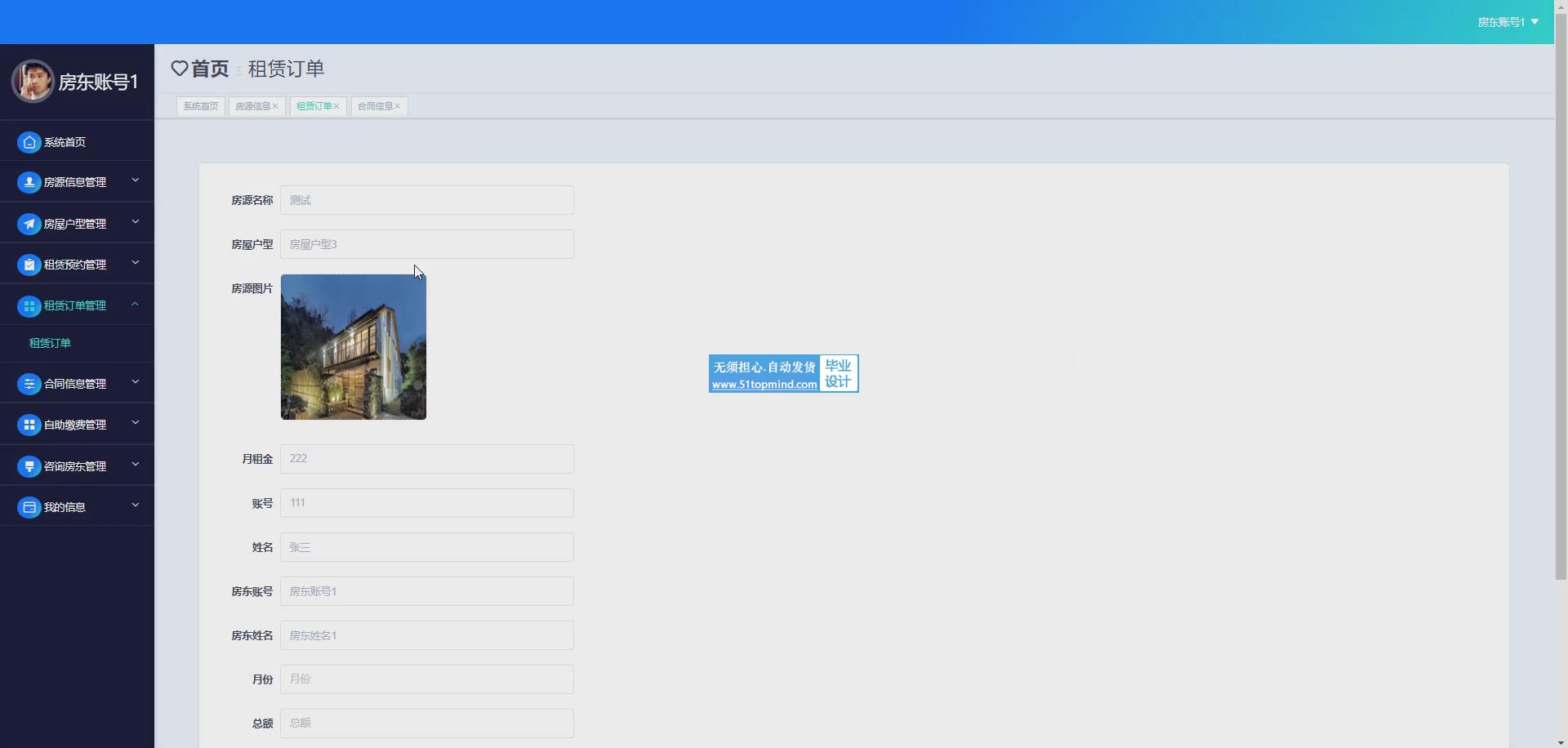 合同管理模块:可以生成、修改、终止租赁合同,并保存合同有关信息可以随时查看。
