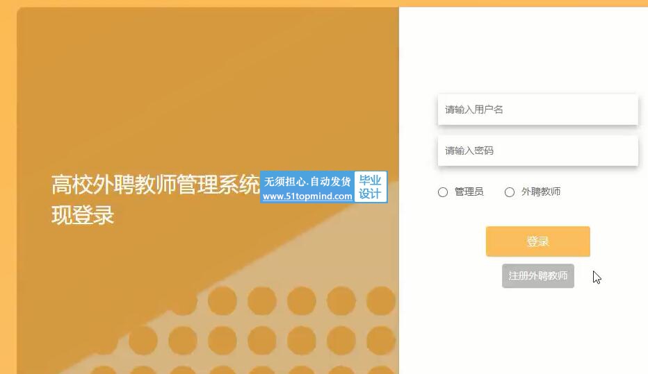 (1)要支持完整的用户登录功能,本系统用户包括管理员与外聘教师,账号的管理通过管理员来实现。