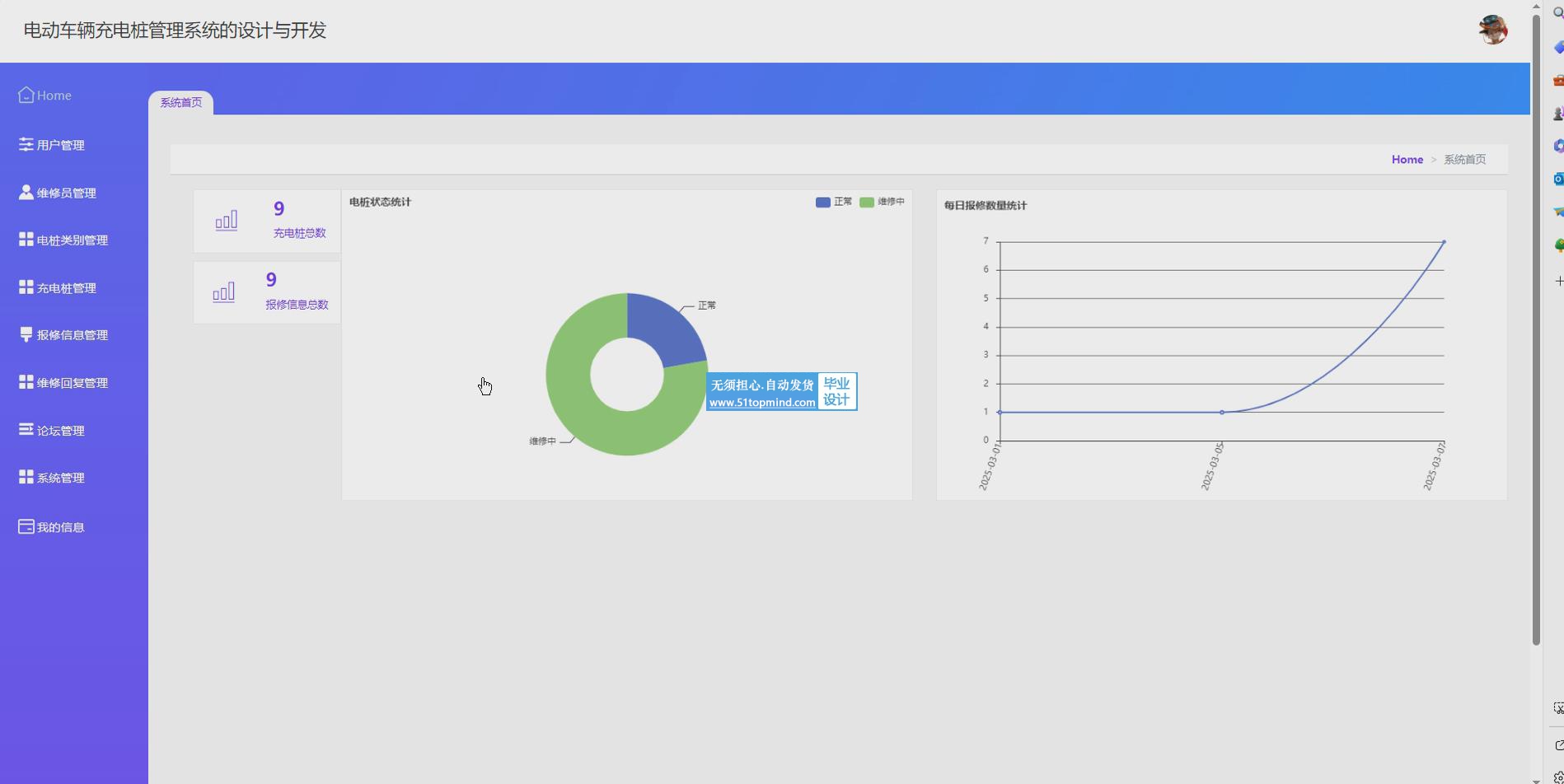 相较于传统电动车辆充电桩管理,本系统可以更方便地管理用户与维修员操作整个系统过程,提高了管理员工作效率和用户体验。用户可以在网上进行查看充电桩、论坛等,维修员可以在网上添加报修信息、维修回复等,他们都能够灵活地修改自己的个人信息,大大提高管理工作的效率。
