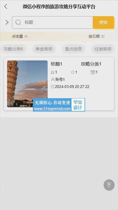 (2)用户互动与社区建设:旅游攻略小程序的价值不仅仅在于提供攻略信息,还在于用户之间的互动和分享。需要解决如何设计有效的评论和点赞系统,以及方便用户之间的私信和互动交流,鼓励用户分享自己的旅游经验和建议,形成一个活跃的社区。