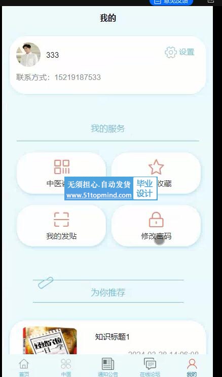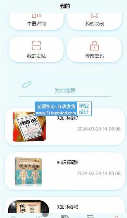 (5)推拿知识管理:查询所有中医发布的推拿知识,进行修改和删除等管理操作。