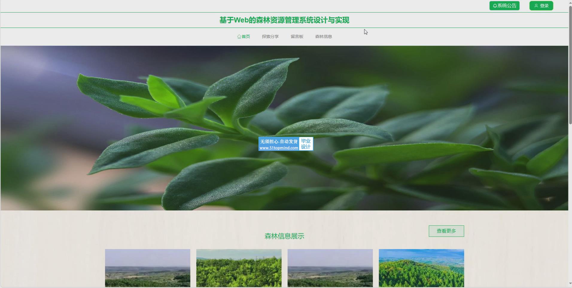 关键词:森林资源管理;SpringBoot;Vue;MySQL;信息共享