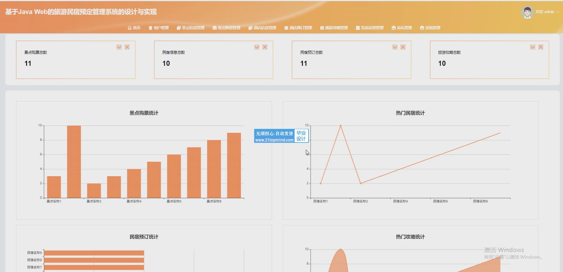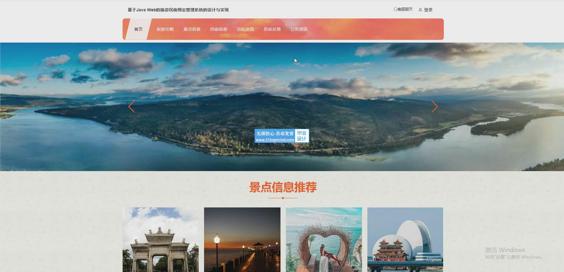 本毕业设计致力于开发一套基于Java Web的旅游民宿预定管理系统,旨在通过现代化技术手段优化传统民宿预订流程,提升用户体验和管理效率。系统采用Vue作为前端技术,结合Spring Boot框架构建后端服务,并以MySQL作为数据库支持,实现了用户与管理员的多角色功能。用户可通过系统浏览旅游攻略、景点信息、进行景点购票、查看民宿详情并完成预订,同时支持投诉反馈功能。管理员则可进行用户管理、景点与民宿信息管理、预订管理以及投诉反馈处理等操作。在系统开发过程中,完成了需求分析、系统设计、功能实现、测试与优化等关键环节,确保系统功能完善、性能稳定。通过模块化设计和分层架构,系统具备良好的可扩展性和可维护性,能够满足未来功能拓展和用户增长的需求。