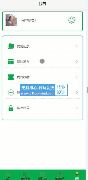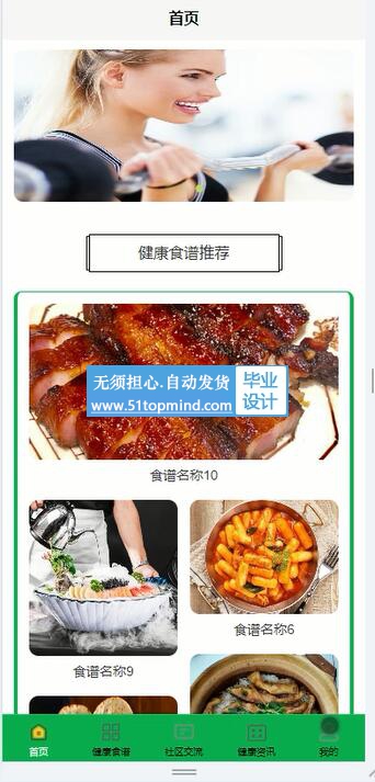 在用户端,设计了简洁易用的界面,使用户能够轻松完成注册登录、浏览健康食谱、参与社区交流、获取健康资讯以及管理个人信息等操作。特别是健康食谱功能,根据营养学原理和用户需求,为用户提供了个性化的饮食建议,帮助他们制定合理的膳食计划。同时,社区交流功能也为用户提供了一个分享饮食心得、交流健康体验的平台,进一步增强了用户的参与感和归属感。
