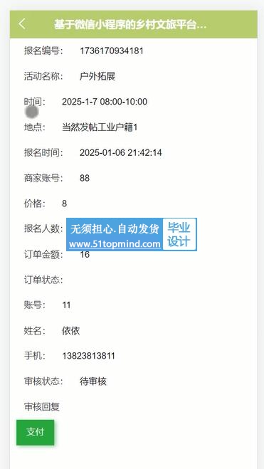 订单处理自动化:商家可以查看和管理游客的预订订单,包括订单状态、确认预订、安排接待等,提高订单处理的效率和准确性。
