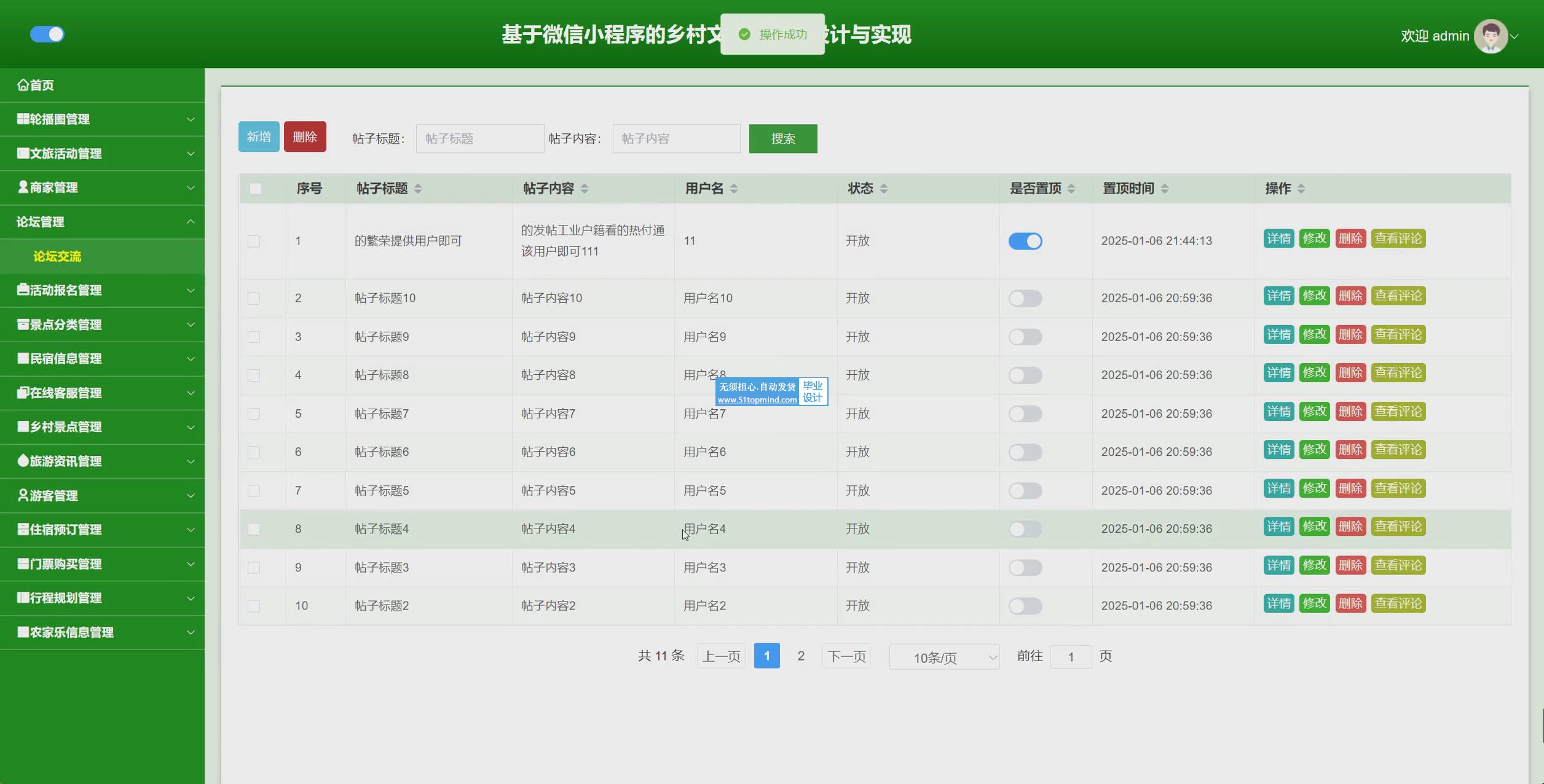 活动发布:发布乡村举办的各类文旅活动信息,包括活动名称、时间、地点、内容、价格等。管理活动报名人数和参与者信息。